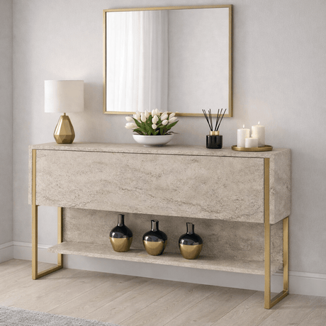 £109.95Unit price /UnavailableModern Sideboard Travertine Luxury 120x80x30 - Golden Frame - One Compartment