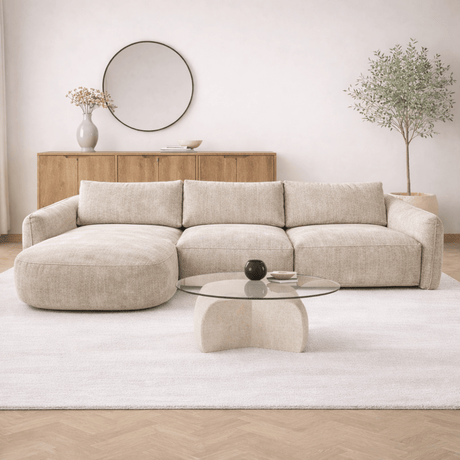 £1,488.00£1,831.00Unit price /UnavailableCorner sofa with lounge in beige bouclé fabric Nova – left