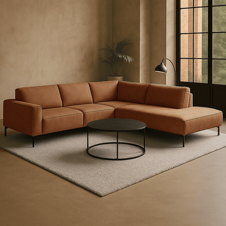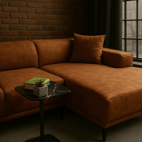 £1,699.95Unit price /UnavailableL-shaped sofa in cognac microfiber Tulin - left