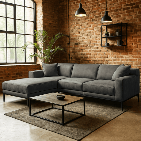 £1,499.95Unit price /UnavailableIndustrial corner sofa anthracite eco-leather Brisbane - left