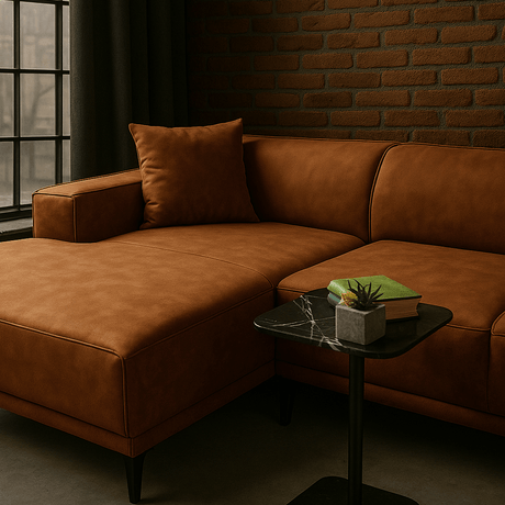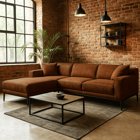 £1,164.00Unit price /UnavailableIndustrial corner sofa cognac eco-leather Brisbane - left