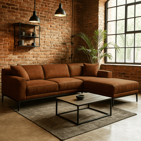 £1,699.95Unit price /UnavailableIndustrial corner sofa cognac eco-leather Brisbane - right
