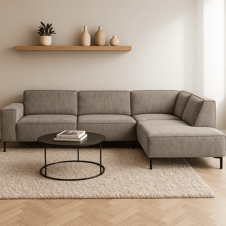 £1,048.00£1,281.00Unit price /UnavailableModern Right Corner Sofa Taupe Fabric Aniko with Chaise Longue 238x142x78 cm