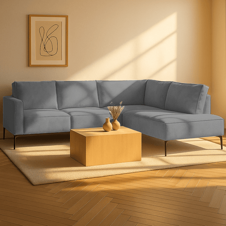 £1,599.95Unit price /UnavailableGray chenille corner sofa upholstered Ravi – Left