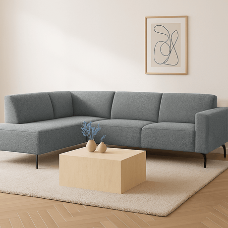 £1,399.95Unit price /UnavailableCorner sofa with compact lounge in grey-blue recycled fabric Moby - right