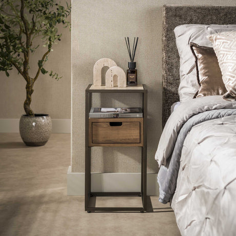 £99.95Unit price /UnavailableNachtkastje met 1 lade keramiek travertin eikenhout Cady