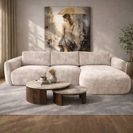 £1,269.00£1,730.00Unit price /UnavailableCorner sofa with chaise longue in beige chenille fabric Shane – left