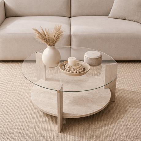£499.95Unit price /UnavailableCairo Coffee Table Round Ø75 cm Travertine - Glass 75x75x40 cm