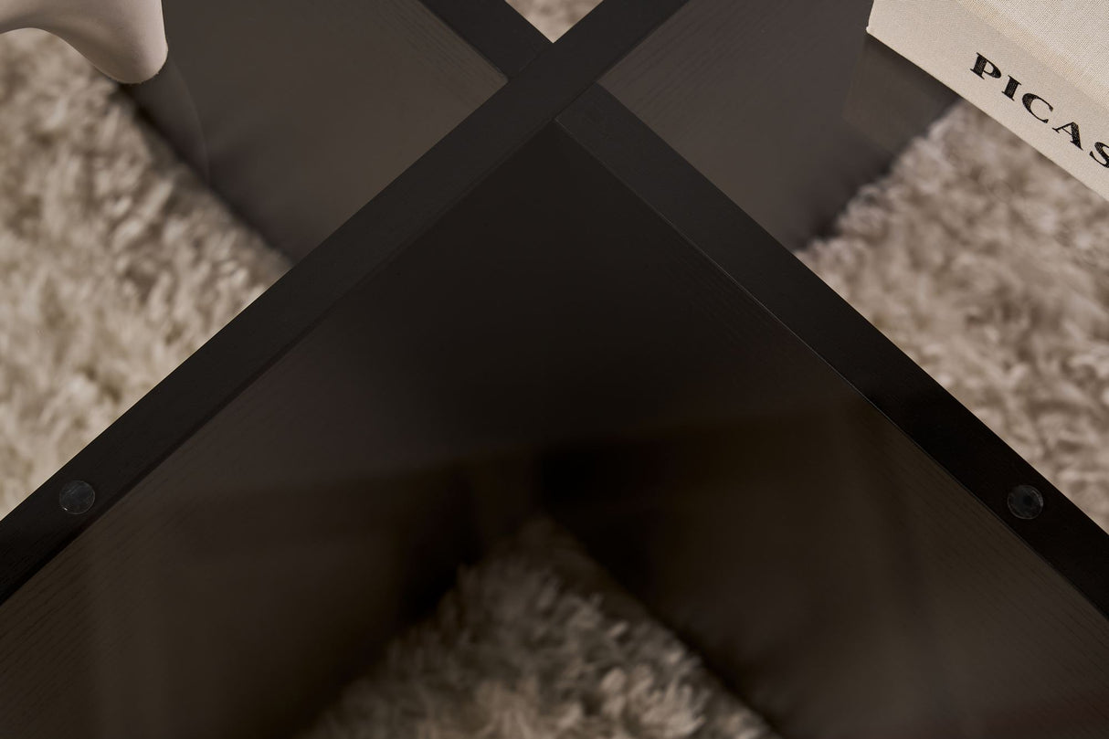 The sleek and modern design of this coffee table instantly adds a touch of sophistication to any room. The combination of Wooden Black and Transparent colors creates a striking contrast that will make a statement in your living room.