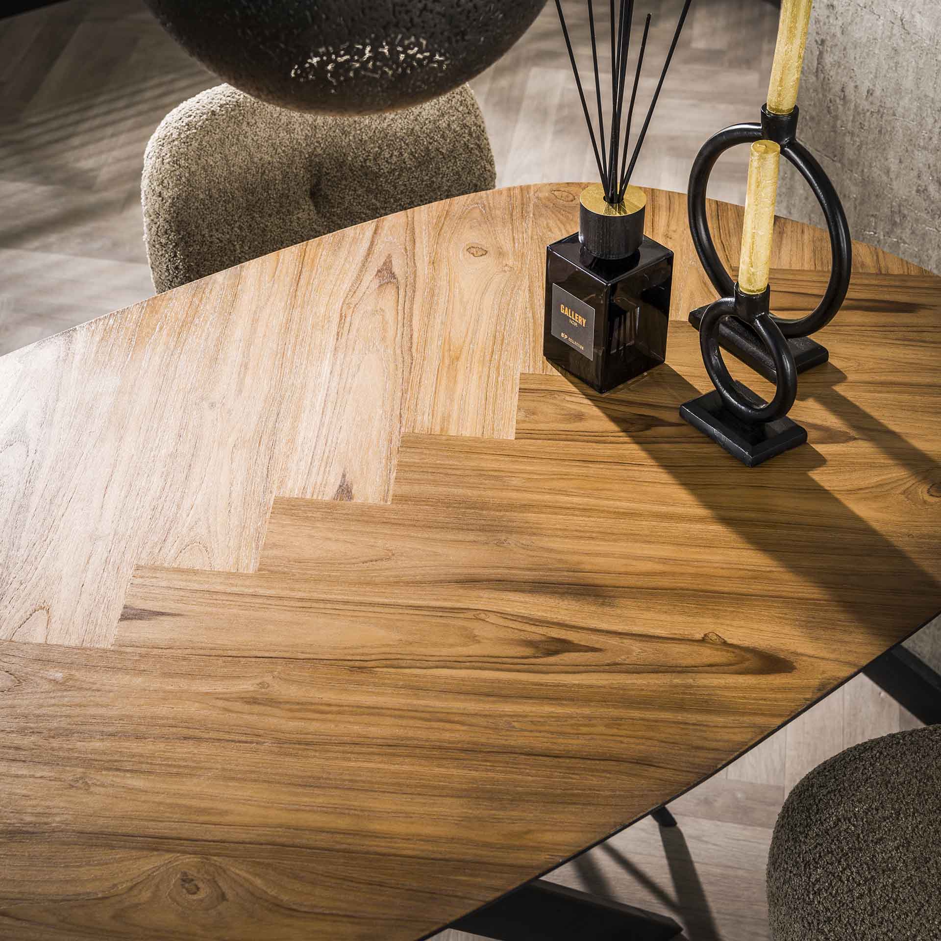 - Warm and natural appearance thanks to teak veneer