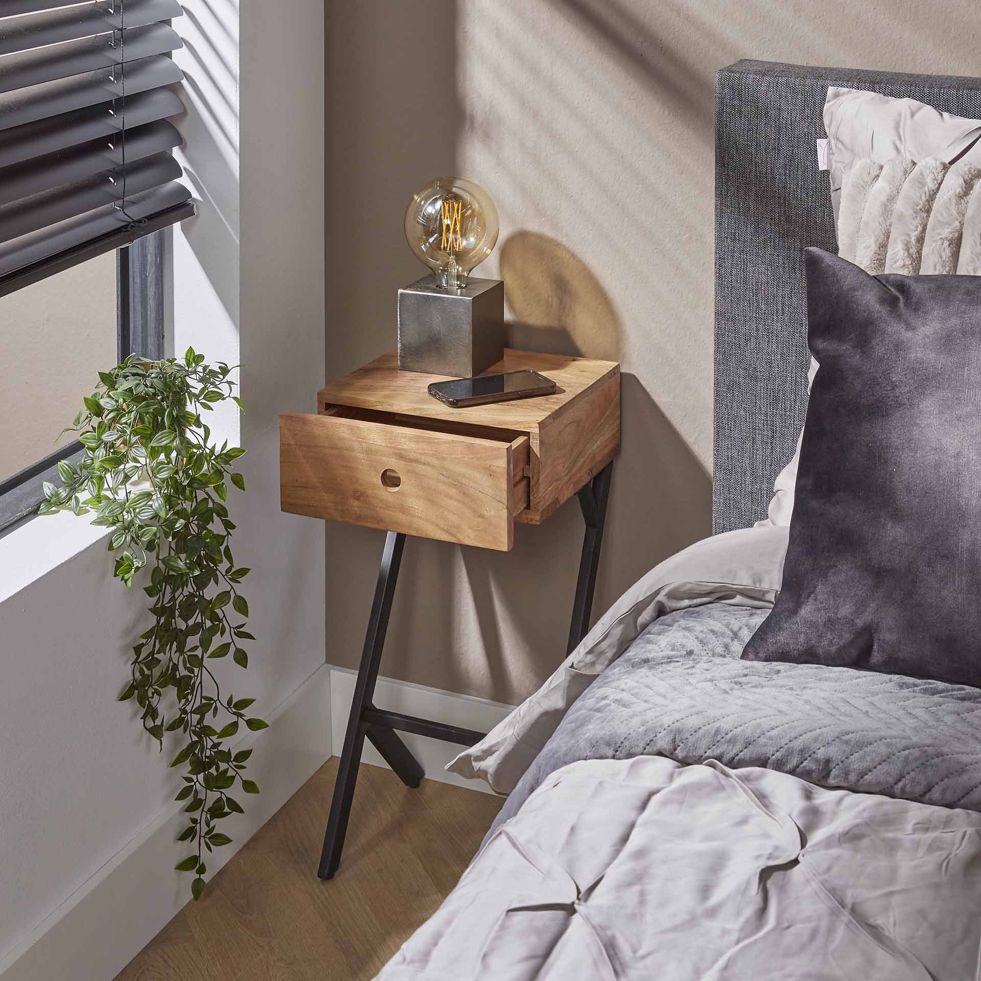 Narrow bedside table Lennard Acacia Wood 1 drawer