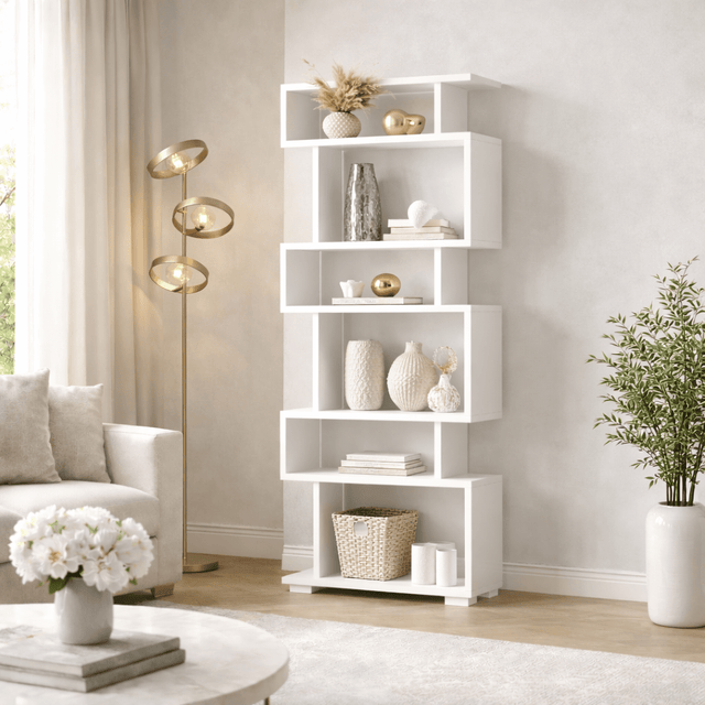 The white color of this bookshelf embodies the essence of Scandinavian design and adds a touch of elegance and sophistication to your interior. It seamlessly fits into any interior style, making it a versatile choice for your home.
