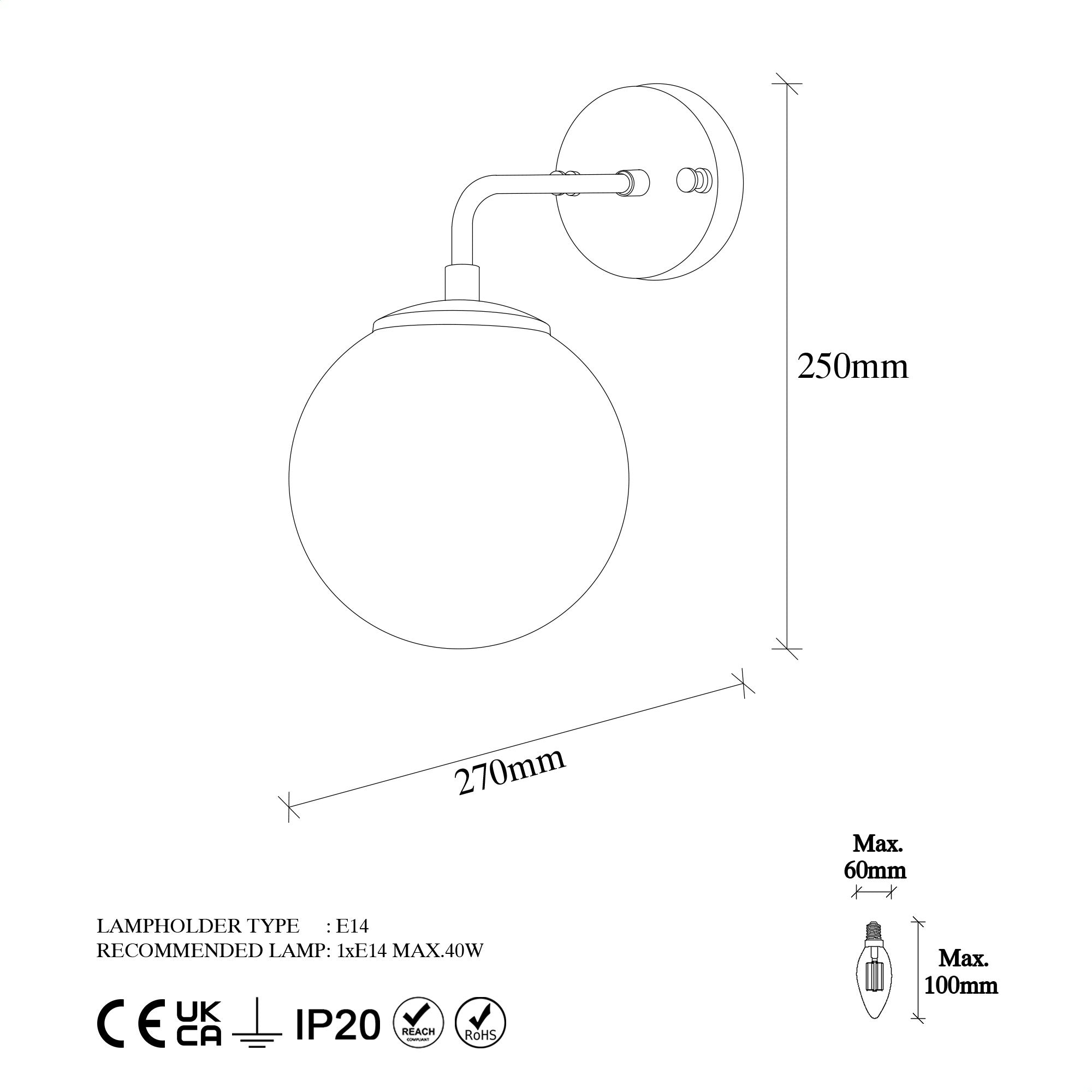 Description and specifications of Bronze Colored Glass Wall Lamp Brim