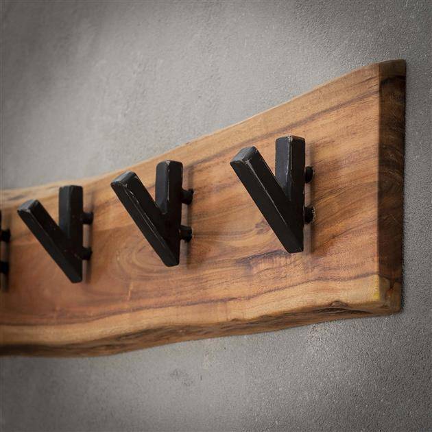 Neatly hanging everything, that's no problem for this coat rack with five hooks. The rustic wood in combination with the metal hooks creates a nice contrast. This coat rack is a real eye-catcher in the hall, sleeping or bathroom.
