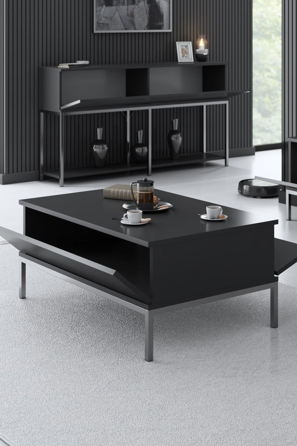 The metal legs not only provide stability but also add a touch of refinement to the overall design. The combination of anthracite and silver creates a striking contrast, making this coffee table a true centerpiece in any setting.