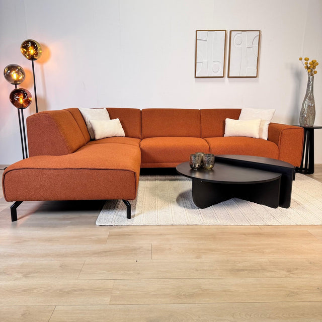 Are you looking for a large, comfortable corner sofa in bouclé fabric? And do you want your corner sofa to become the centerpiece of your living room? Then the Maël corner sofa in terracotta color is an excellent option!
