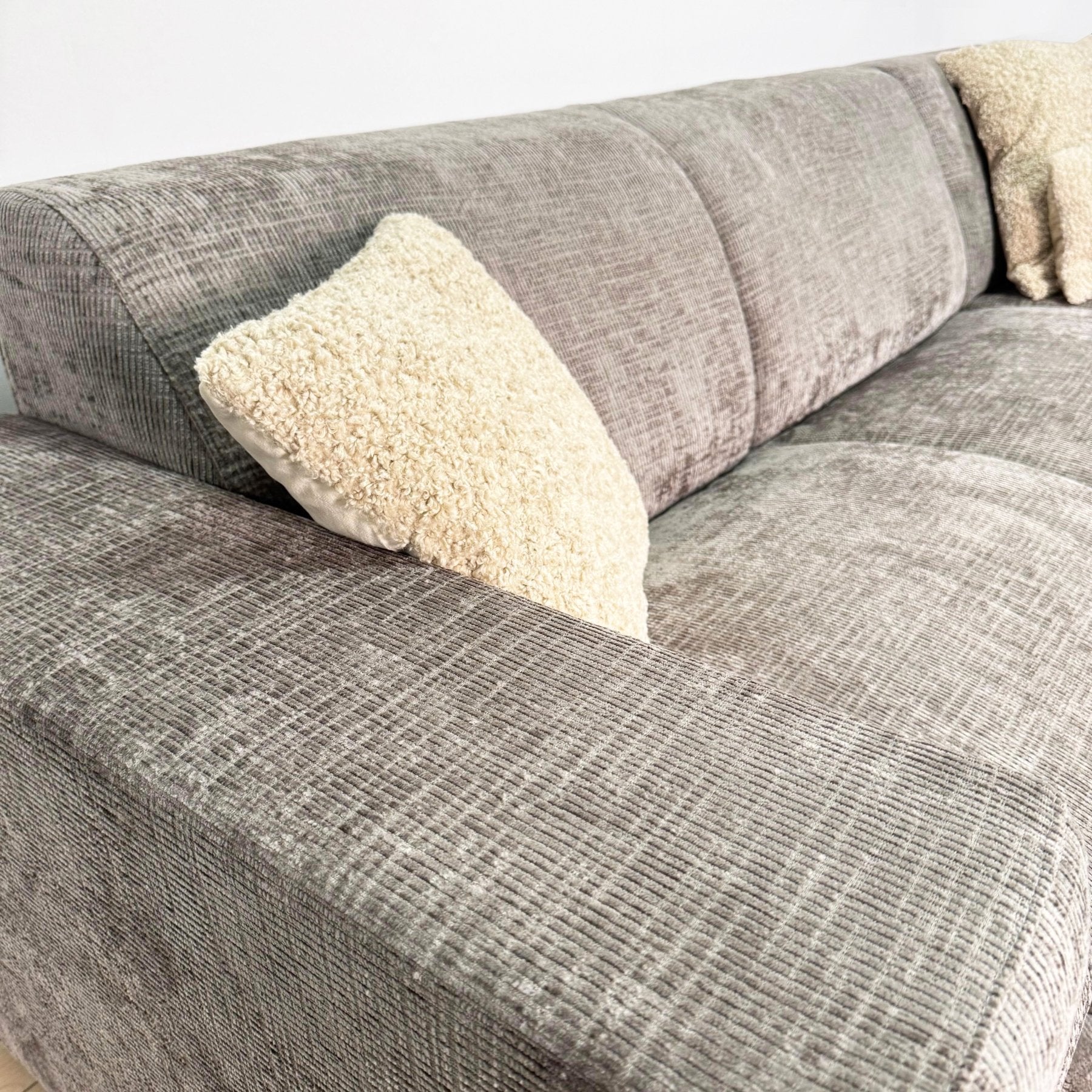 Corner sofa with chaise longue in taupe chenille fabric Manon - right