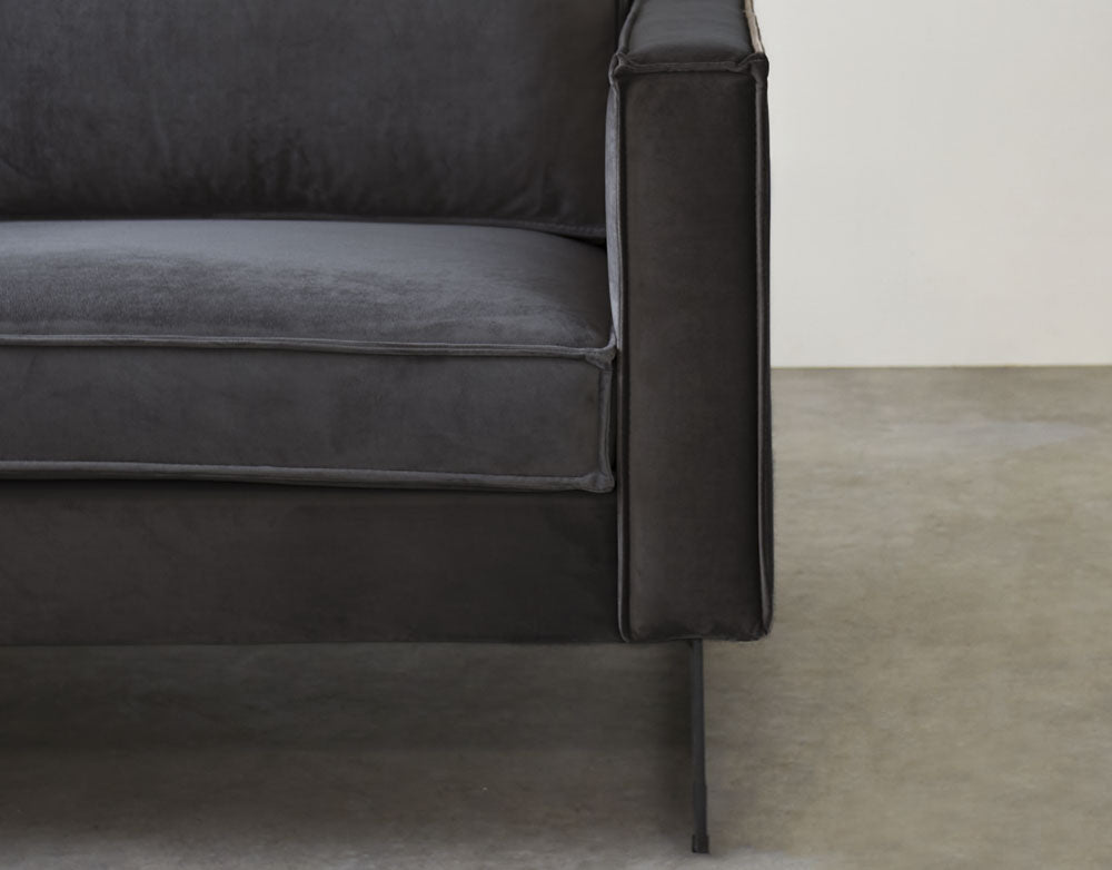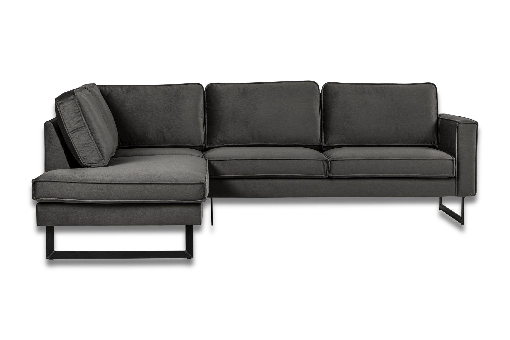 Corner sofa loose cushions anthracite velvet Quinn - left