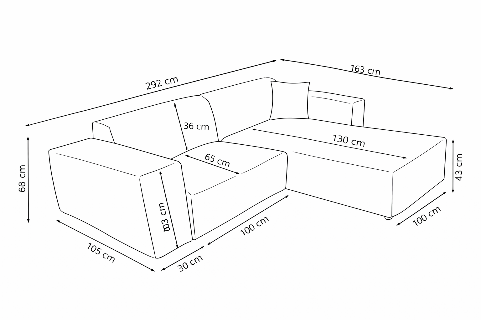 | Total depth | 160 cm (with ottoman), 95 cm (seating area) |
