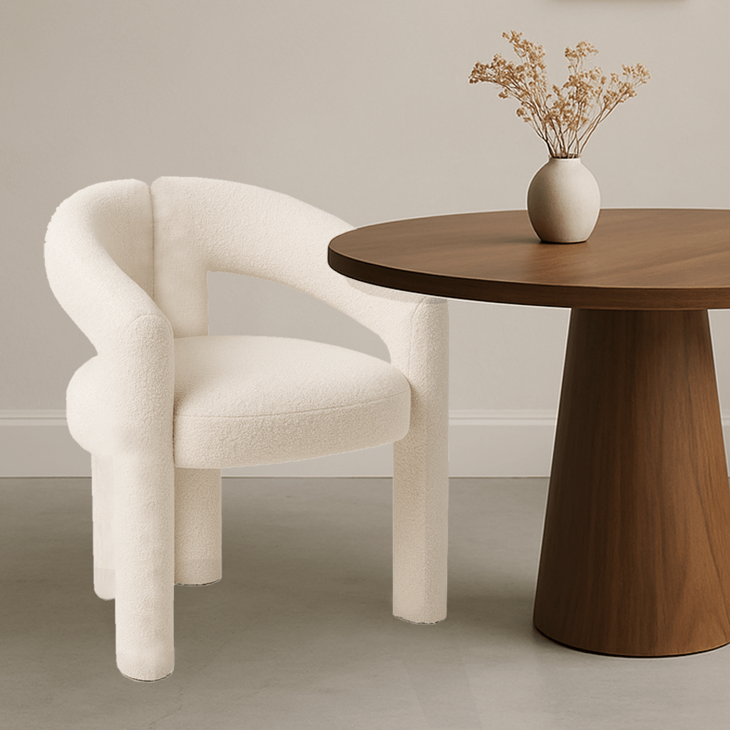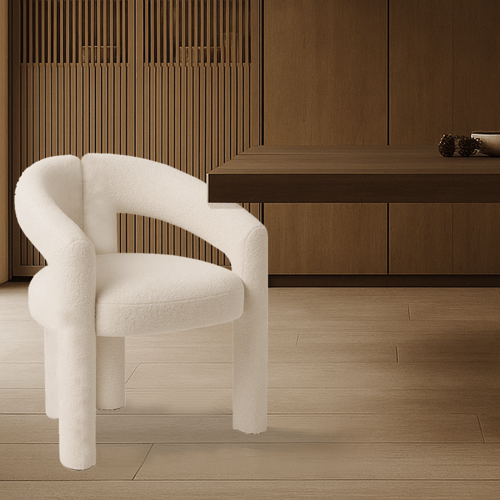 Design Dining Chair Ivory Bouclé Maro - Fully Upholstered