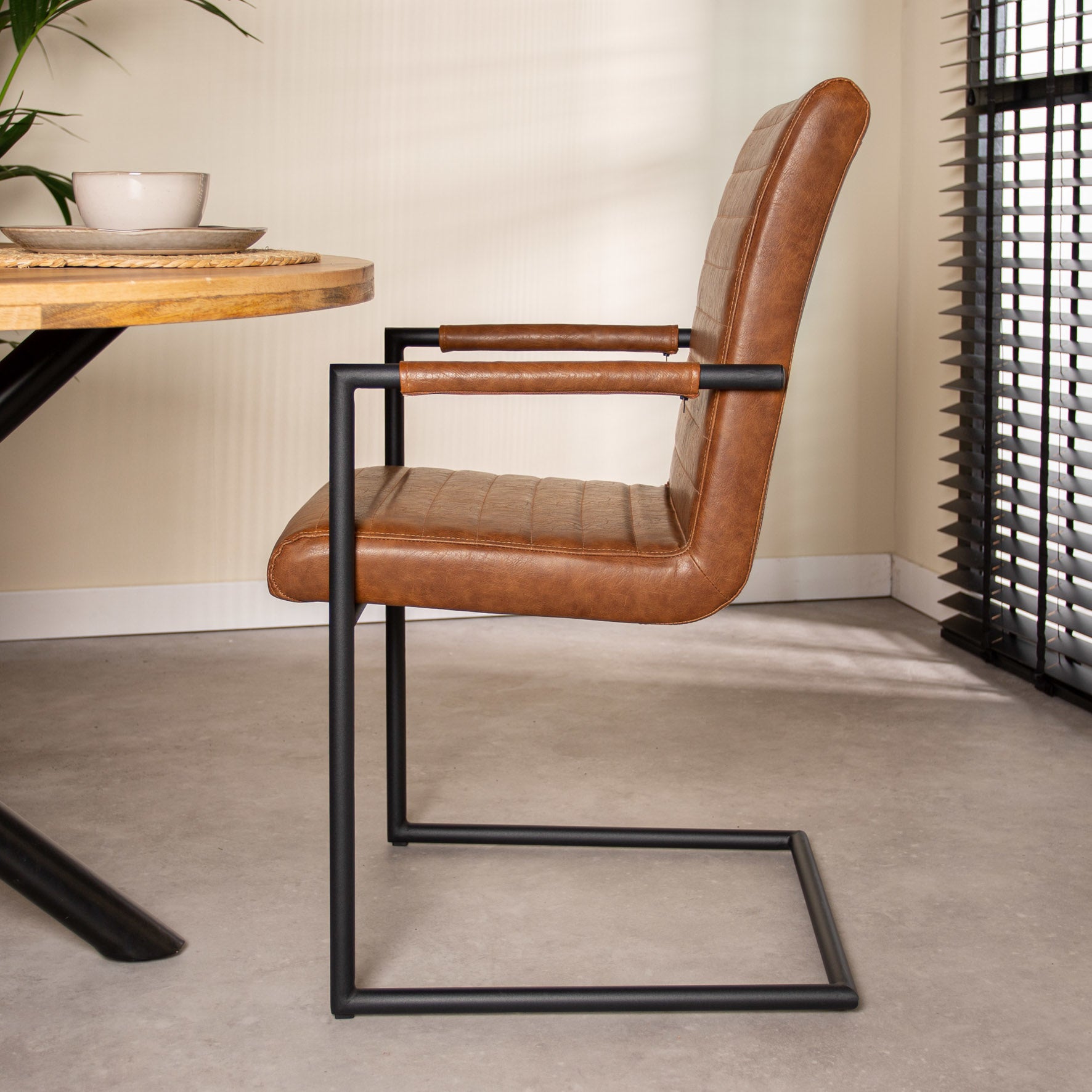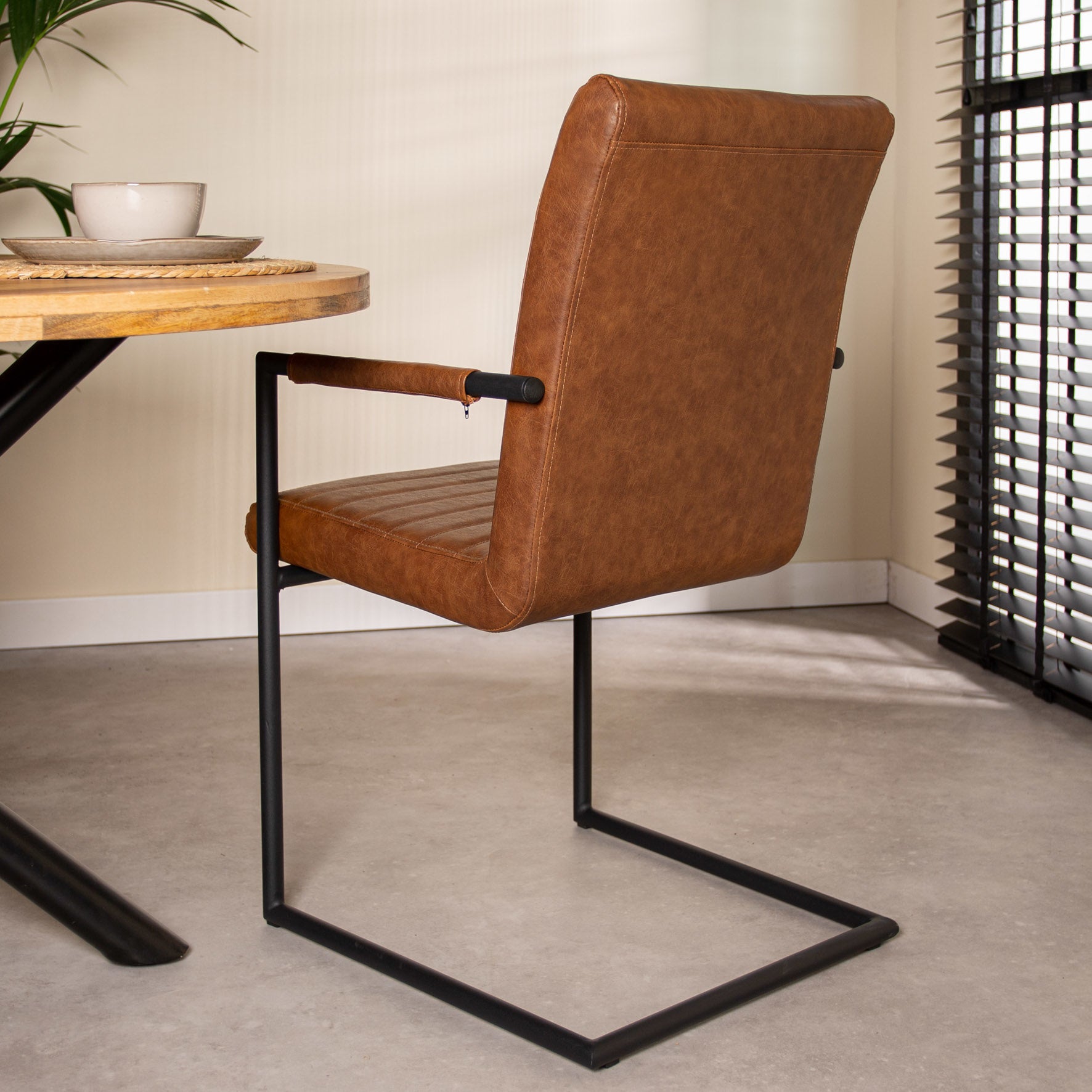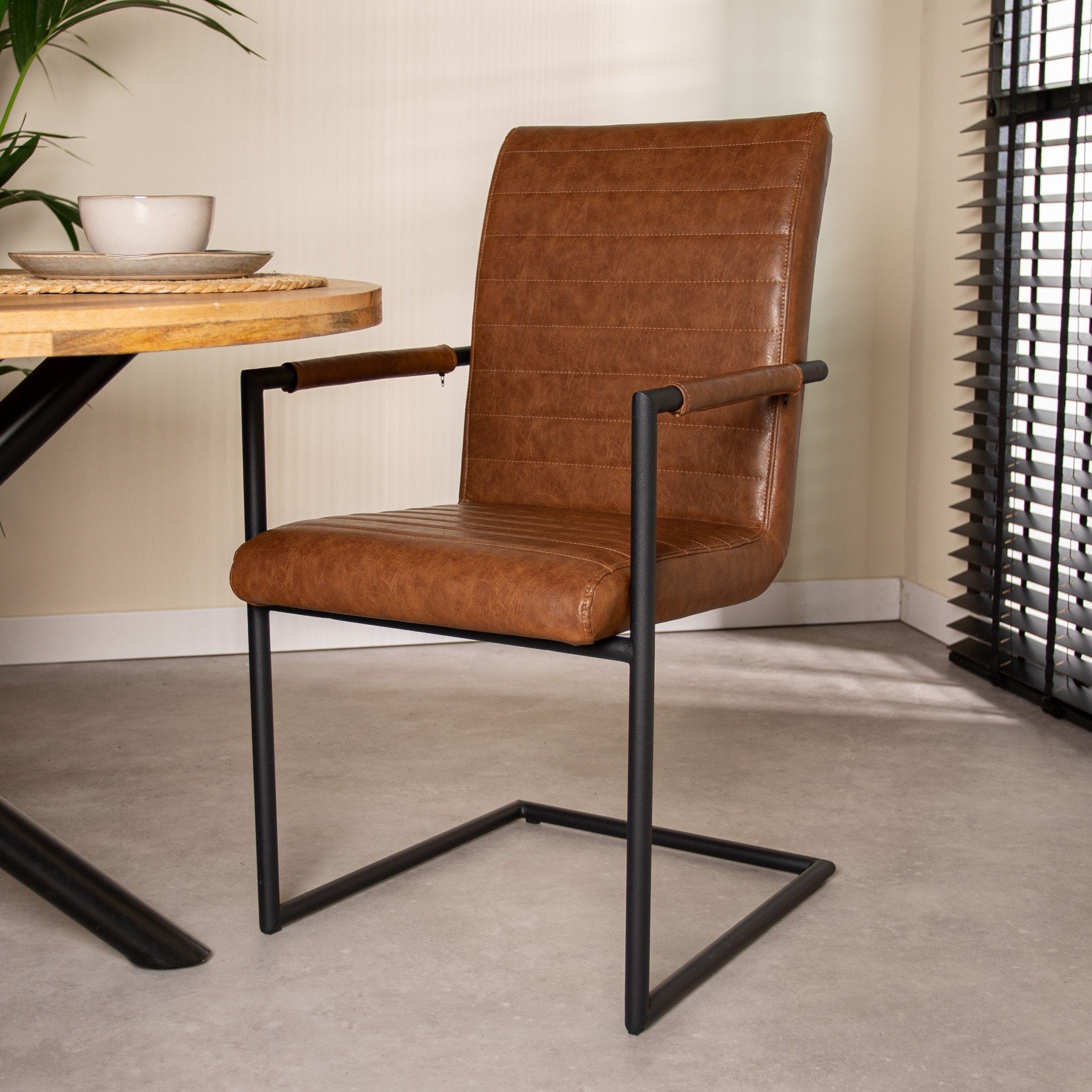 The industrial dining chair Bras cognac is a sturdy dining chair that owes its wonderful seating comfort to a thick seat and a sturdy backrest with armrests.