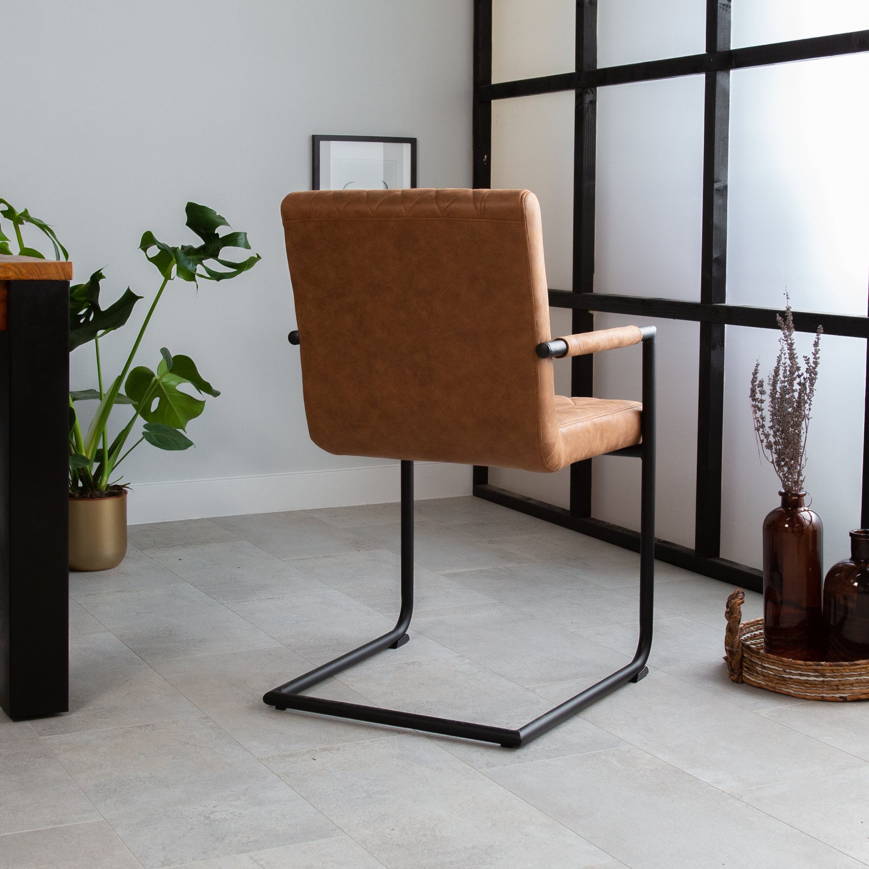Description and specifications of Industrial Dining Chair Cognac Microfiber Fabric Dean - With Armrests