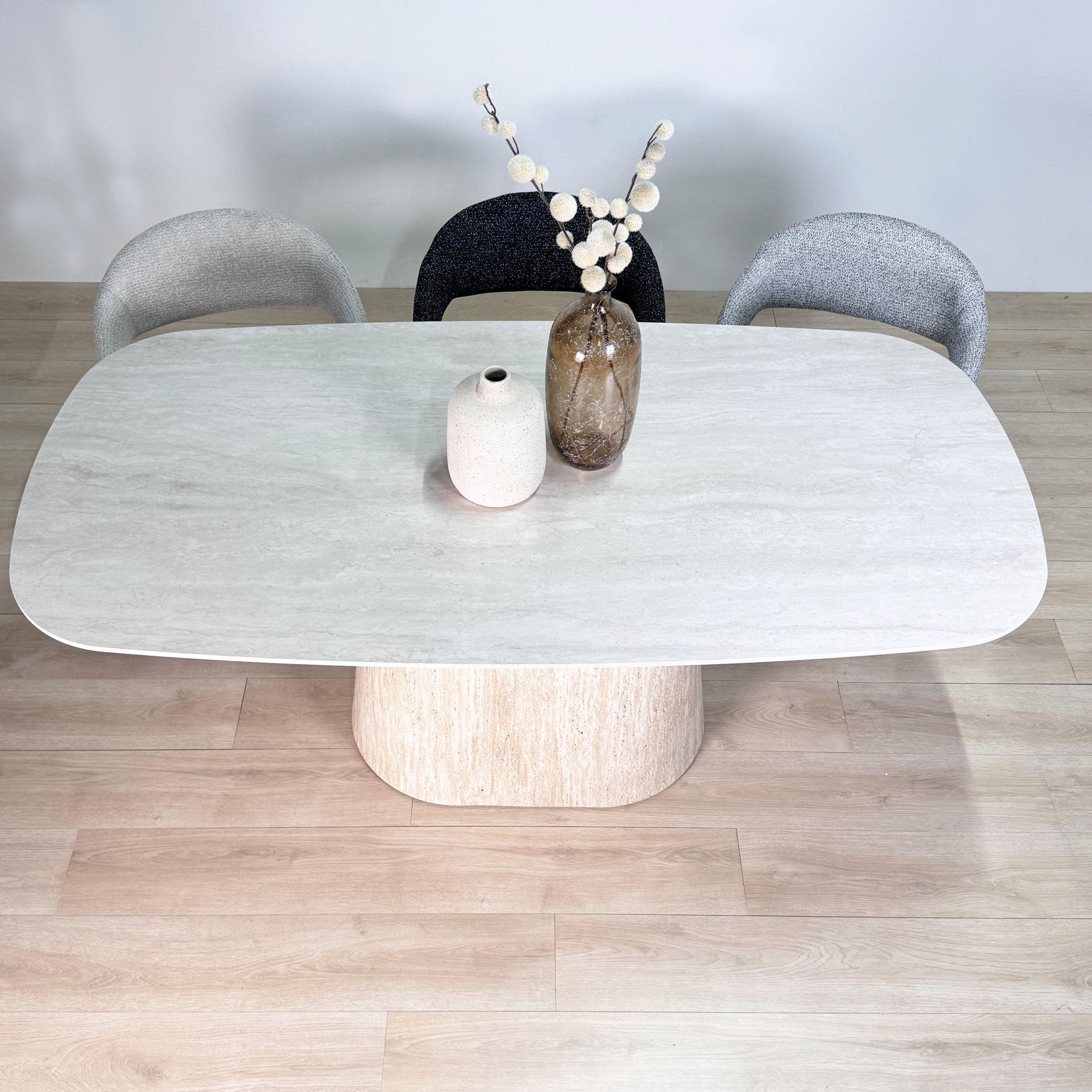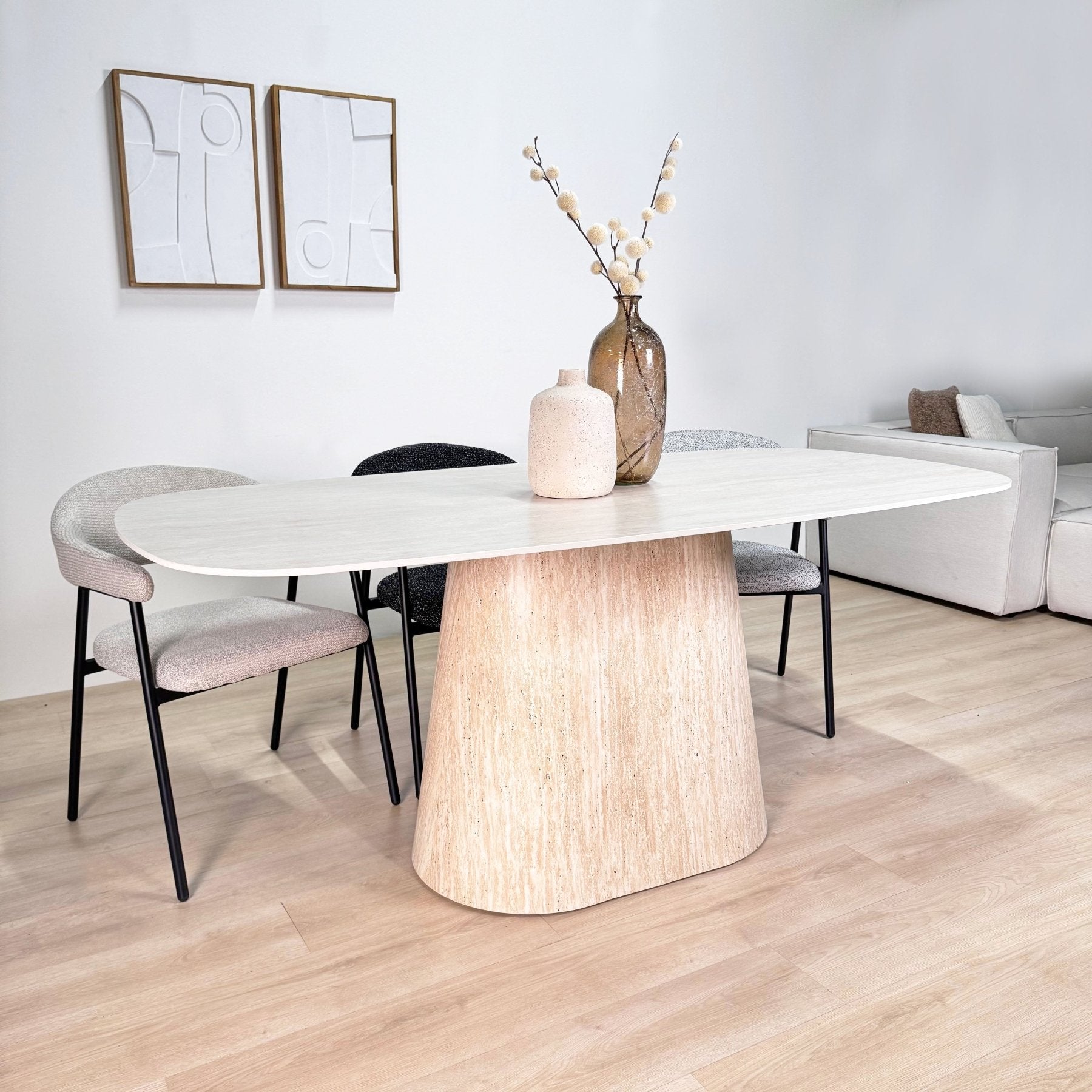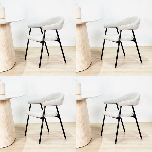 Since bouclé usually comes in calm, neutral tones, it seamlessly fits various interior styles and effortlessly combines with sleek or organic shapes. The material is durable by nature and retains its beautiful look even after prolonged use, making long dining sessions never feel uncomfortable. Do you want tranquility yet character in your interior? With bouclé, you choose timeless elegance and comfort in one.