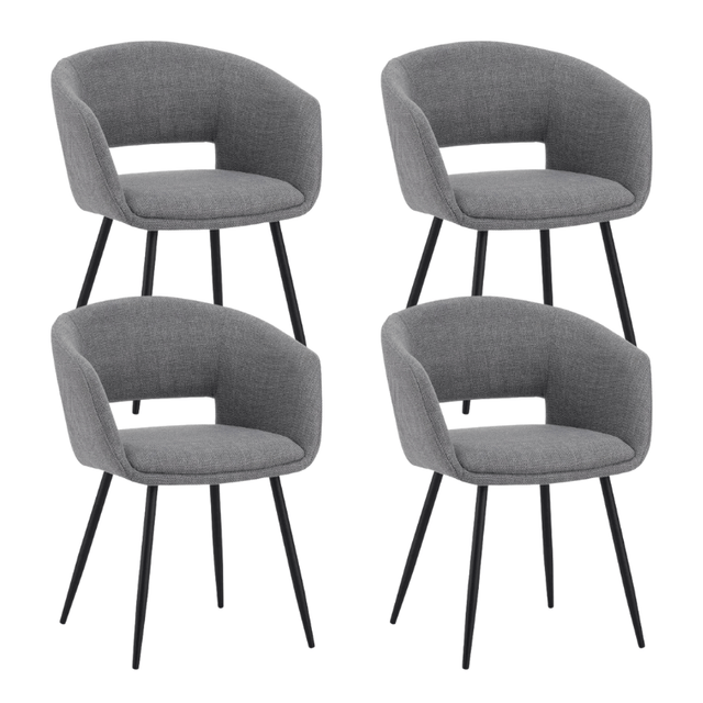 Description and specifications of Scandinavian dining chair gray fabric bucket shape Don - with armrests