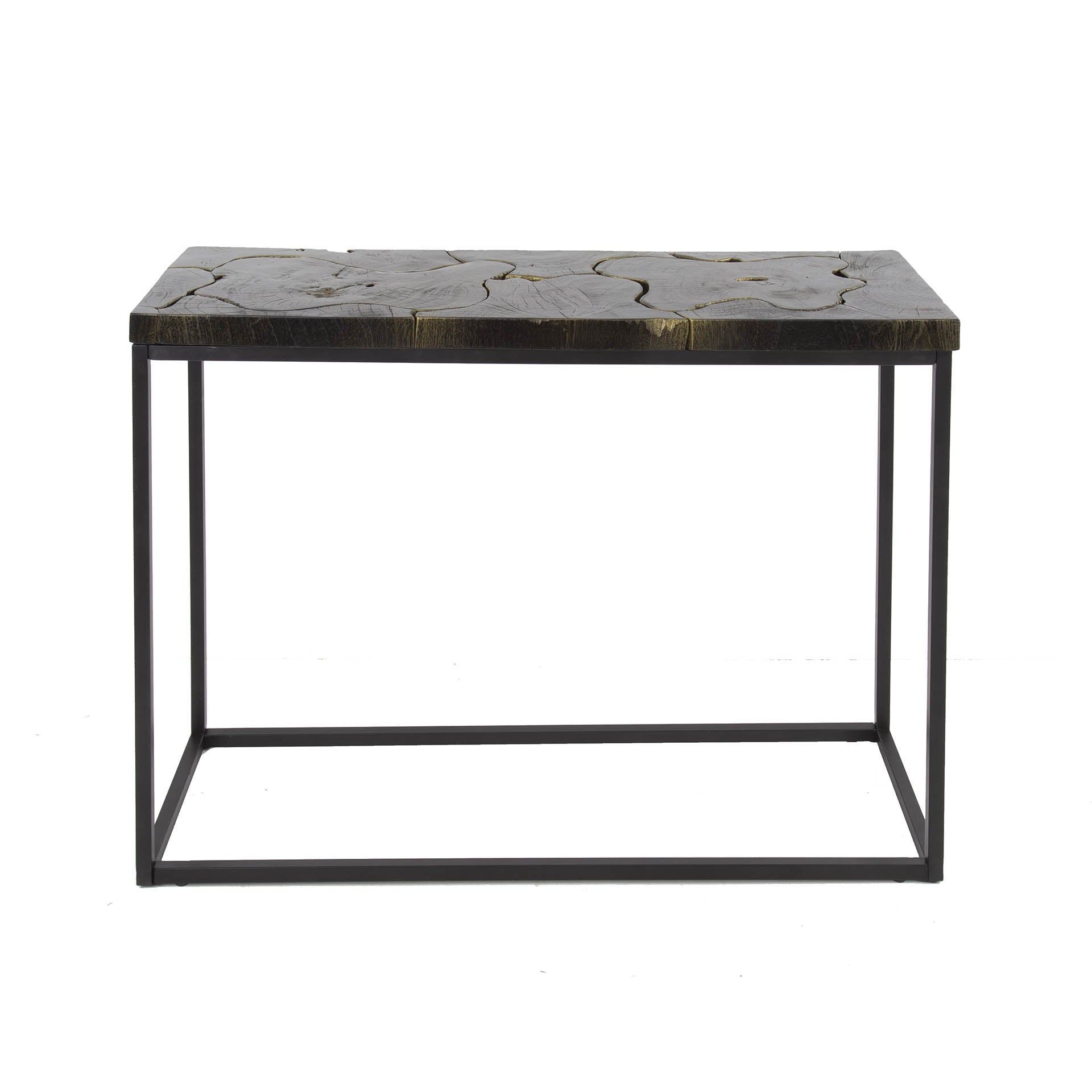 Sidetable Minette is a surprising appearance thanks to the combination of black-gold teak and the metal frame. The table top is black with a golden finish. The Minette Sidetable is a cool stops with character.
