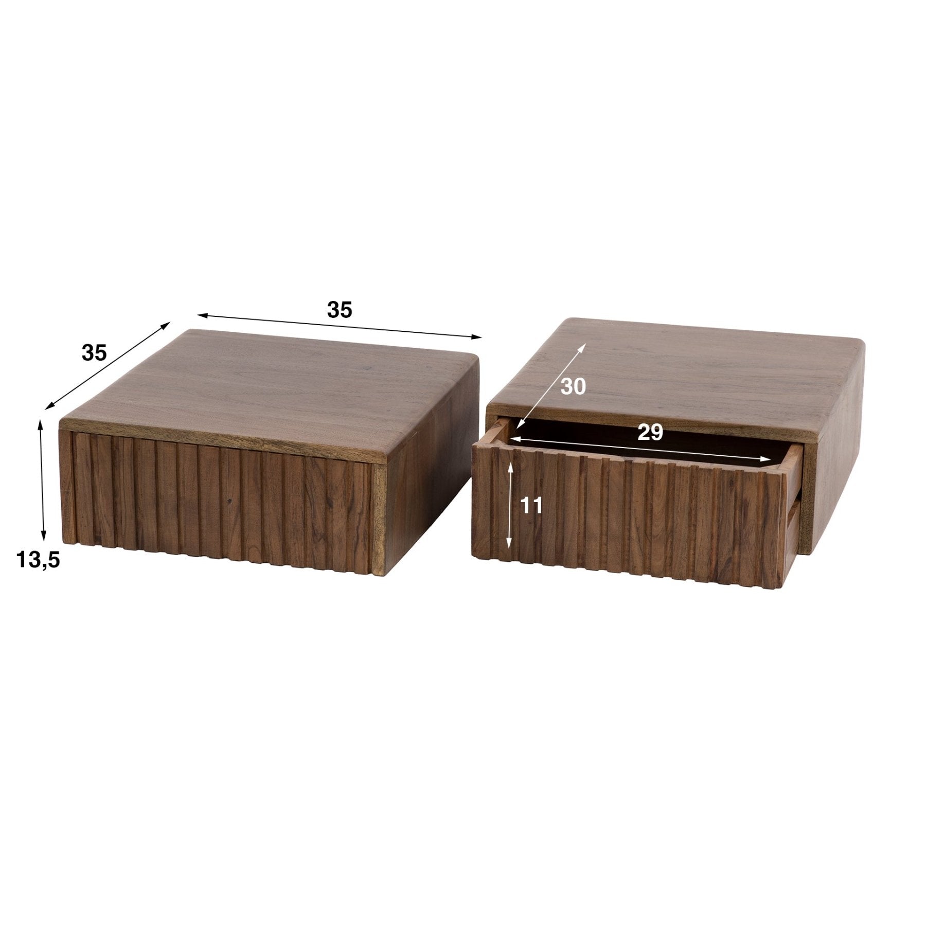 Description and specifications of Floating nightstand acacia wood drift brown – 1 drawer