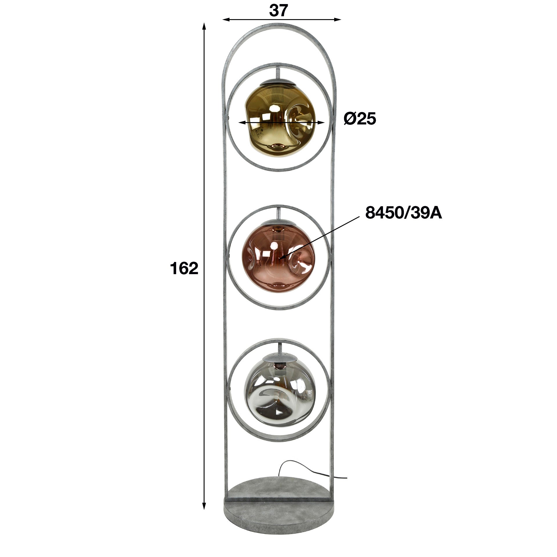 - Material: Robust metal in old silver with colored glass hoods