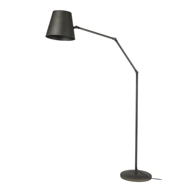 The lampshades of this robust floor lamp are made entirely of metal and contain and open top and bottom. The hoods are adjustable thanks to a bullet joint. The Carta floor lamp stands on a sturdy, round foot and can be perfectly combined in any interior. The foot and the frame are also made of metal and are finished with a dark Charcoal color, just like the lampshade. This gives the floor lamp a beautiful and cool vintage look.