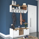 Furniture set Coat rack - Shoe cabinet - White-Walnut Melamine