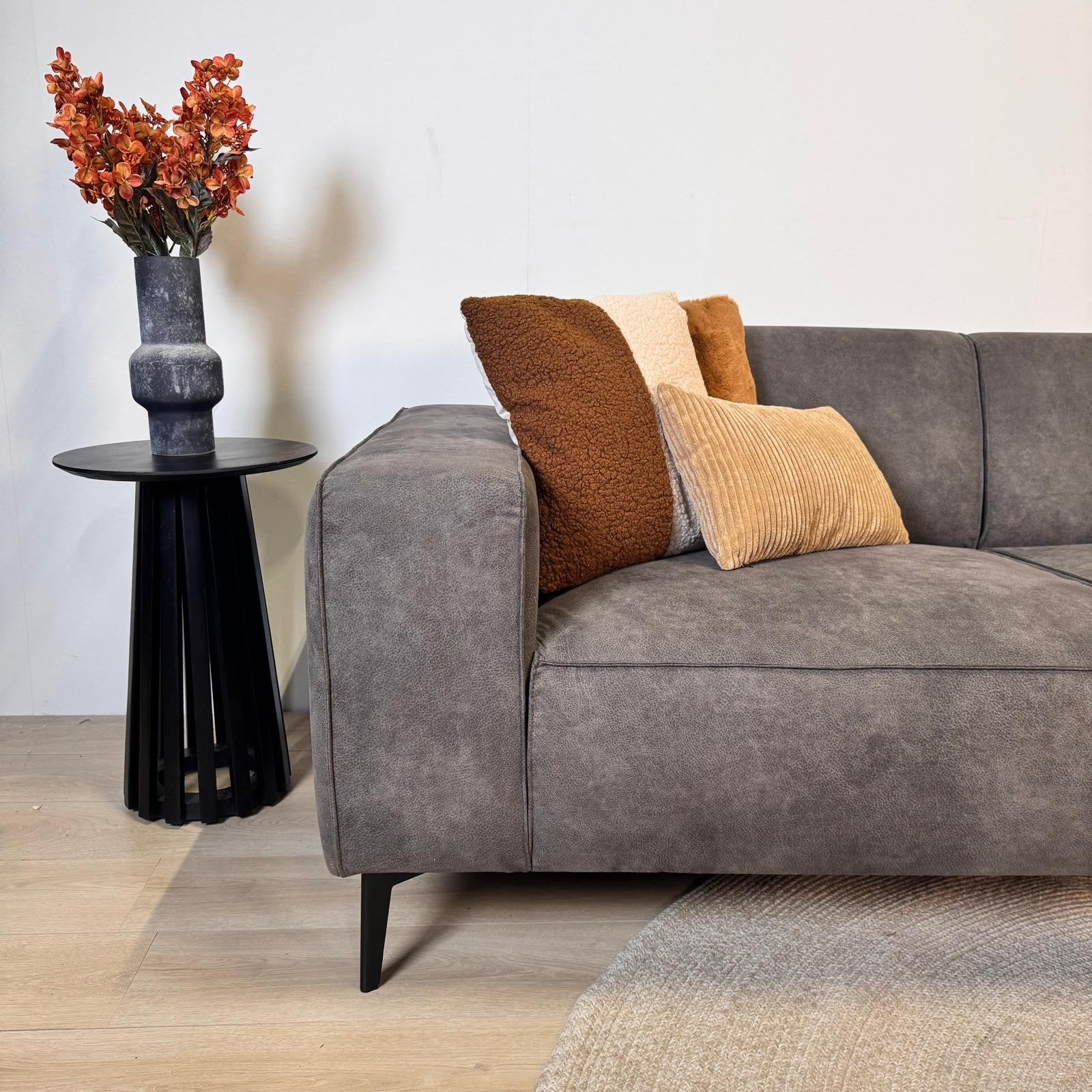 Corner sofa Brisbane is a beautiful corner sofa for the living room. The corner sofa is upholstered in leather and features a comfortable seat. The back cushions and seat are fixed upholstered and feel comfortable. Because the corner sofa is no less than 275 cm wide, there is enough space for several people to sit on the sofa. The corner sofa stands on high, metal legs and has an industrial look. The Brisbane is a valuable addition to the living room. This corner sofa is also available with the chaise longue on the other side and in anthracite.
