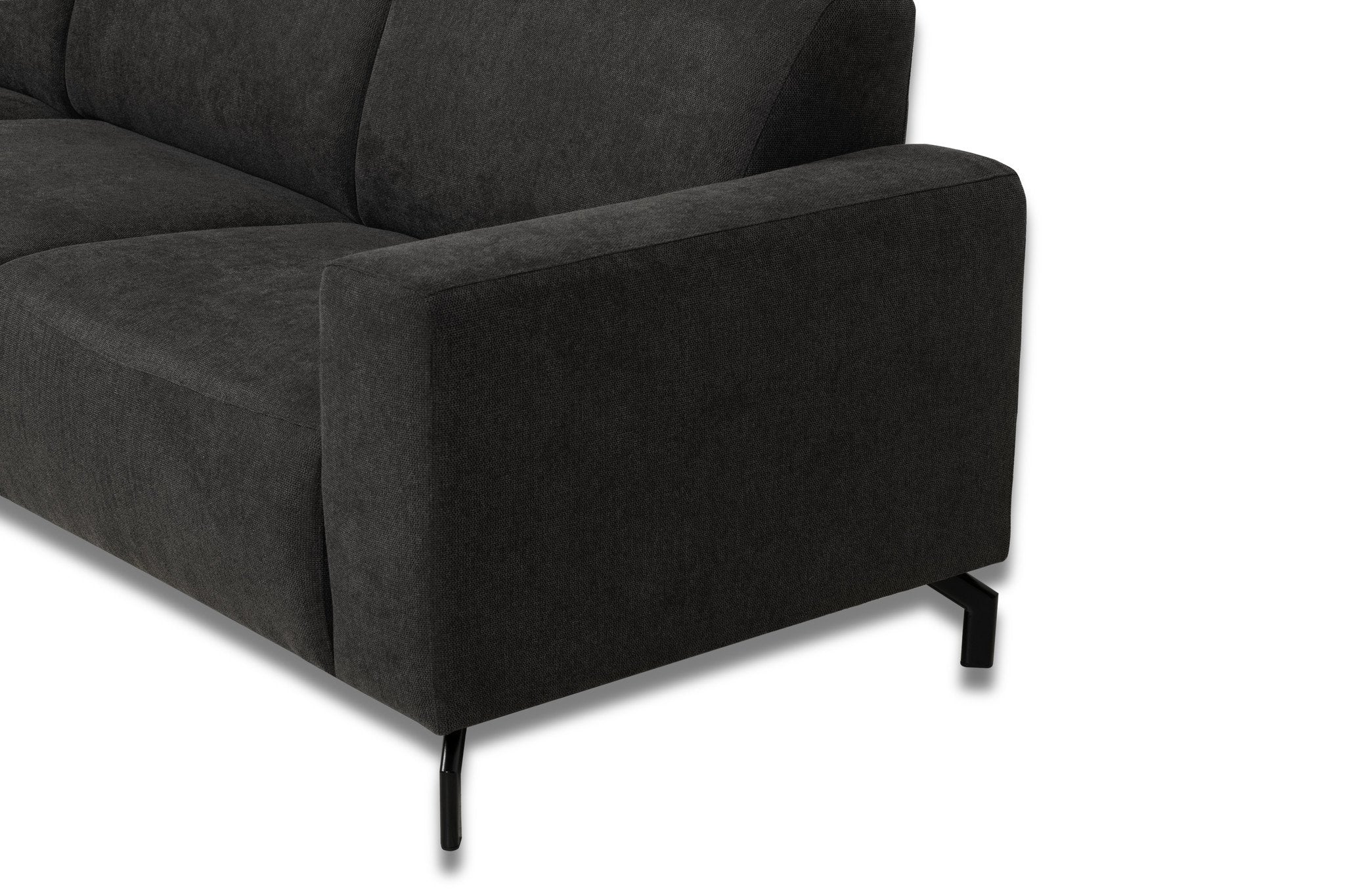 The Verona anthracite corner sofa is a valuable addition to every living style. The Verona is stylish, contains a beautiful design and is very comfortable thanks to the wide seats. There is certainly room for the entire family on this couch! The Verona corner sofa stands on high, black metal legs, which gives the sofa a tough look. With well-shaped cushions and a large chaise longue you can sit on your couch. DE Verona Corner Sofa is VERKRIAvailable in different models. Material upholstery