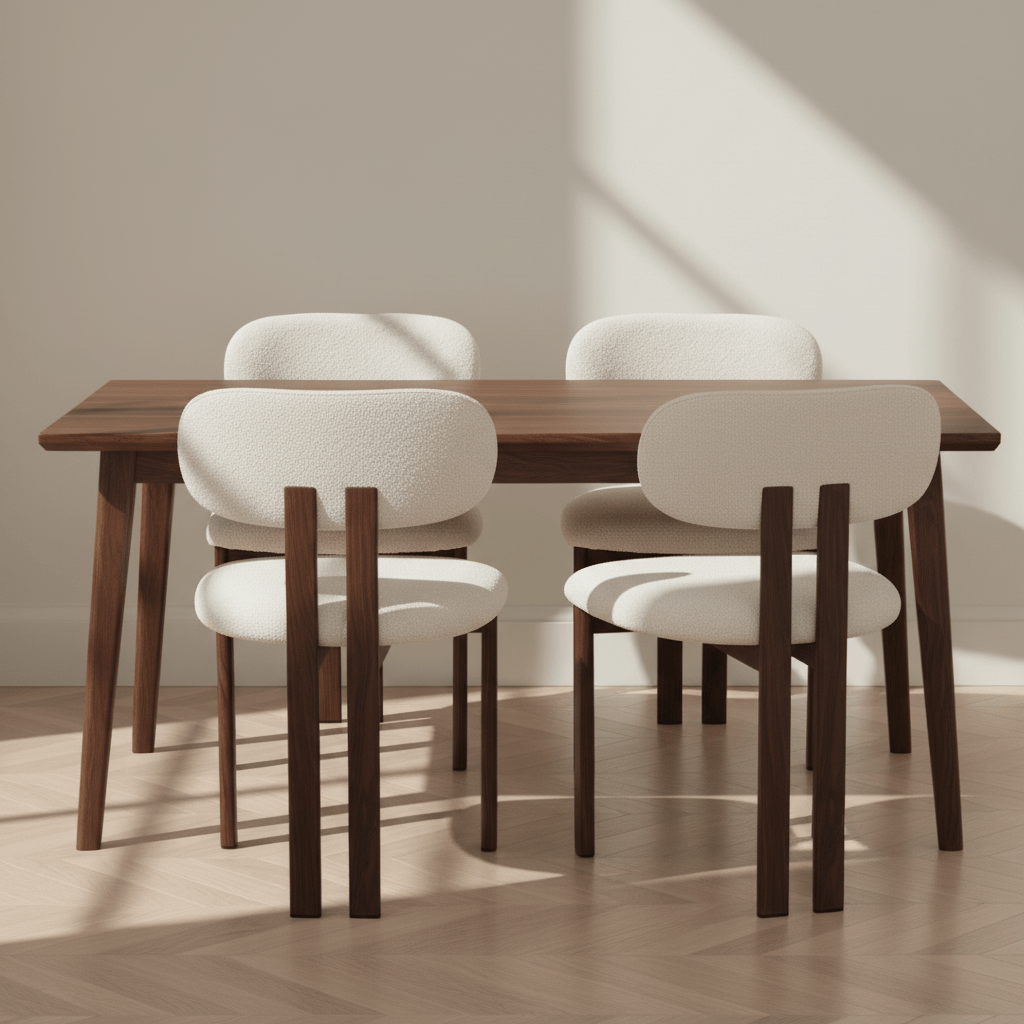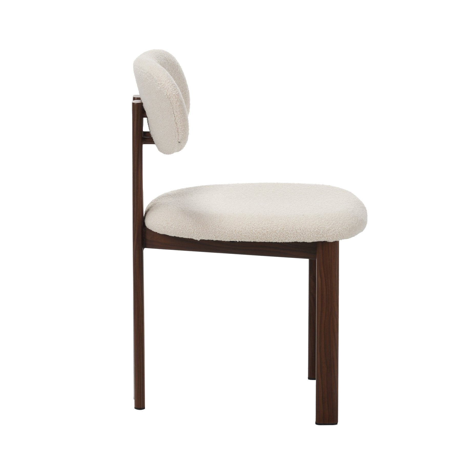 Japandi Dining Chair Miyo Bouclé Ivory - Walnut Look Frame
