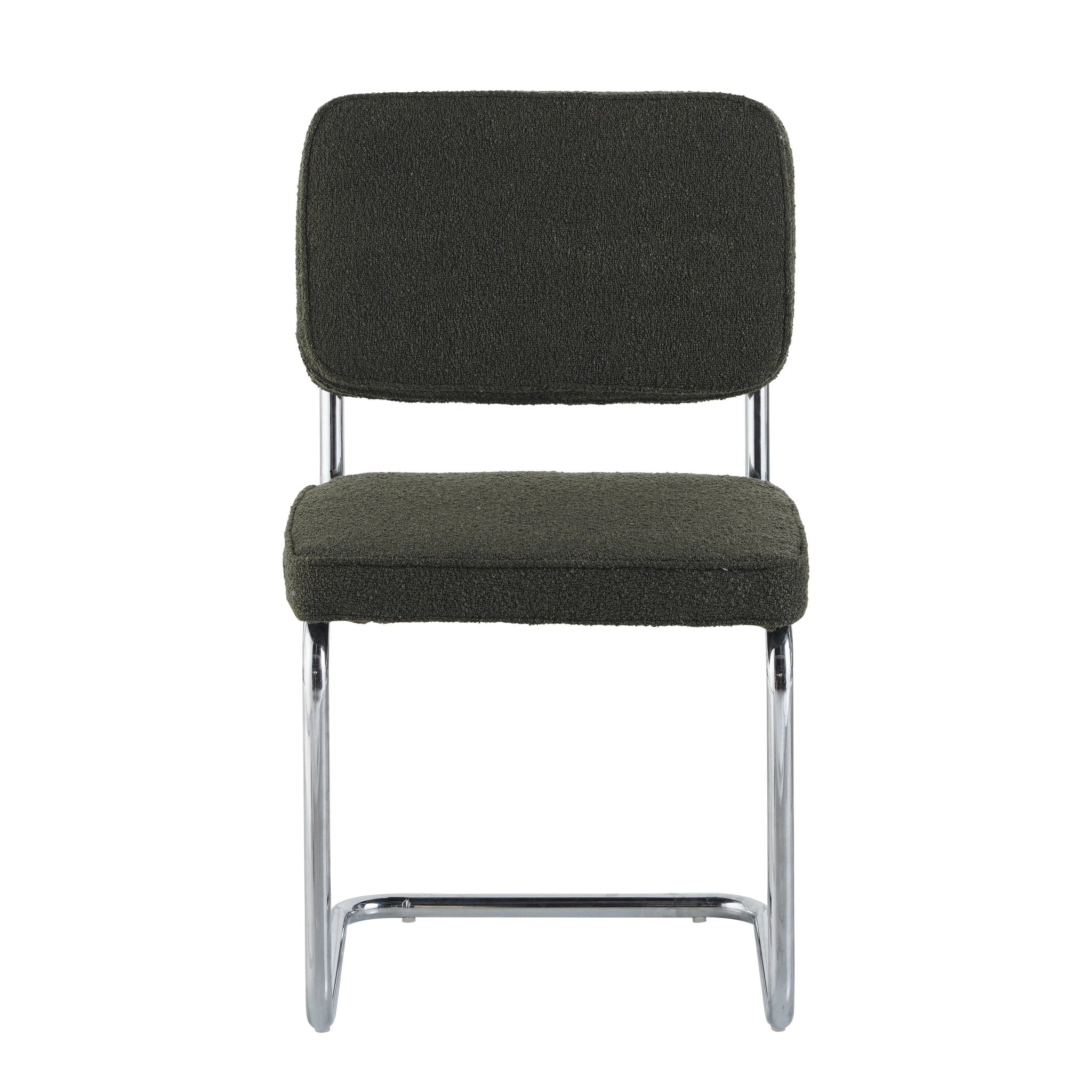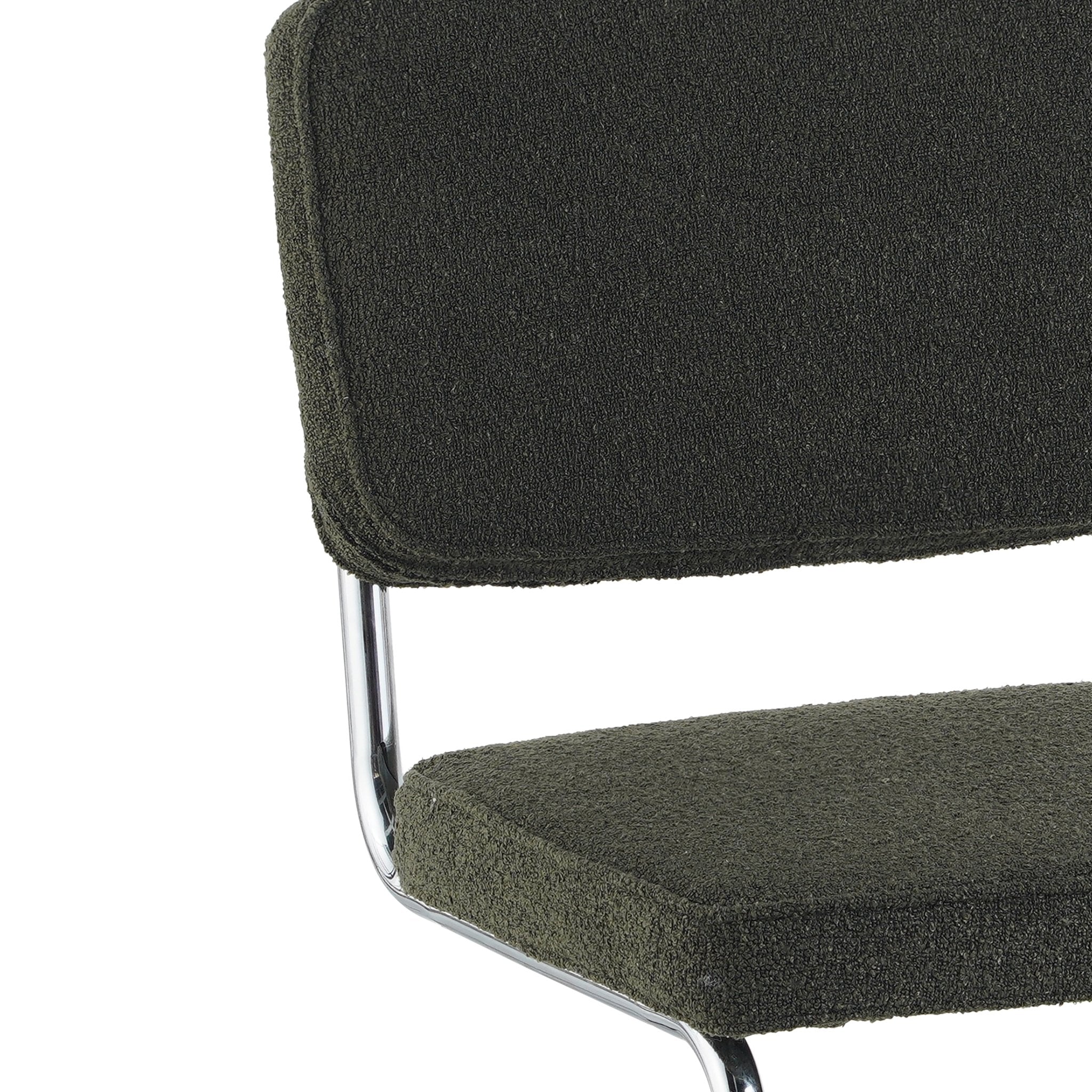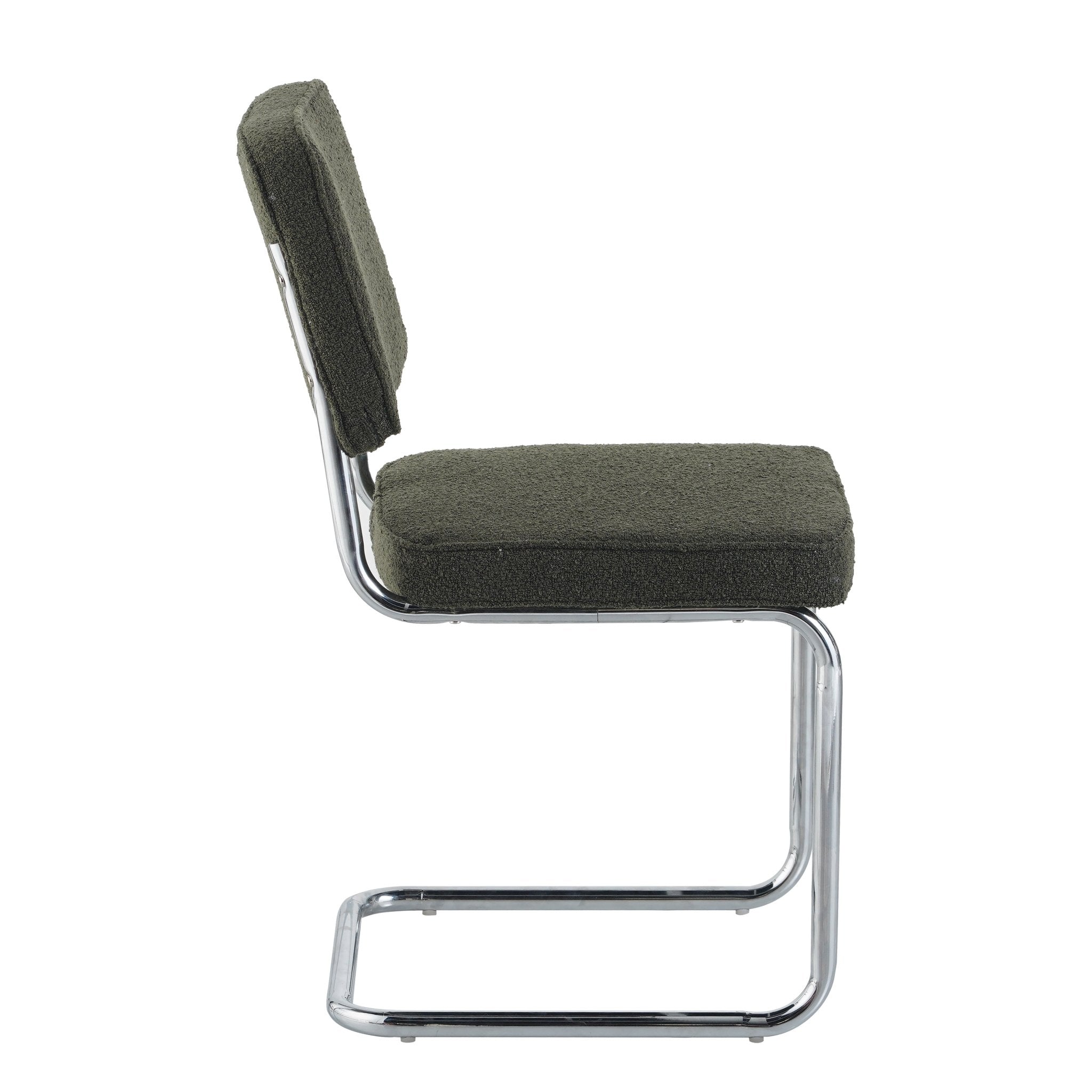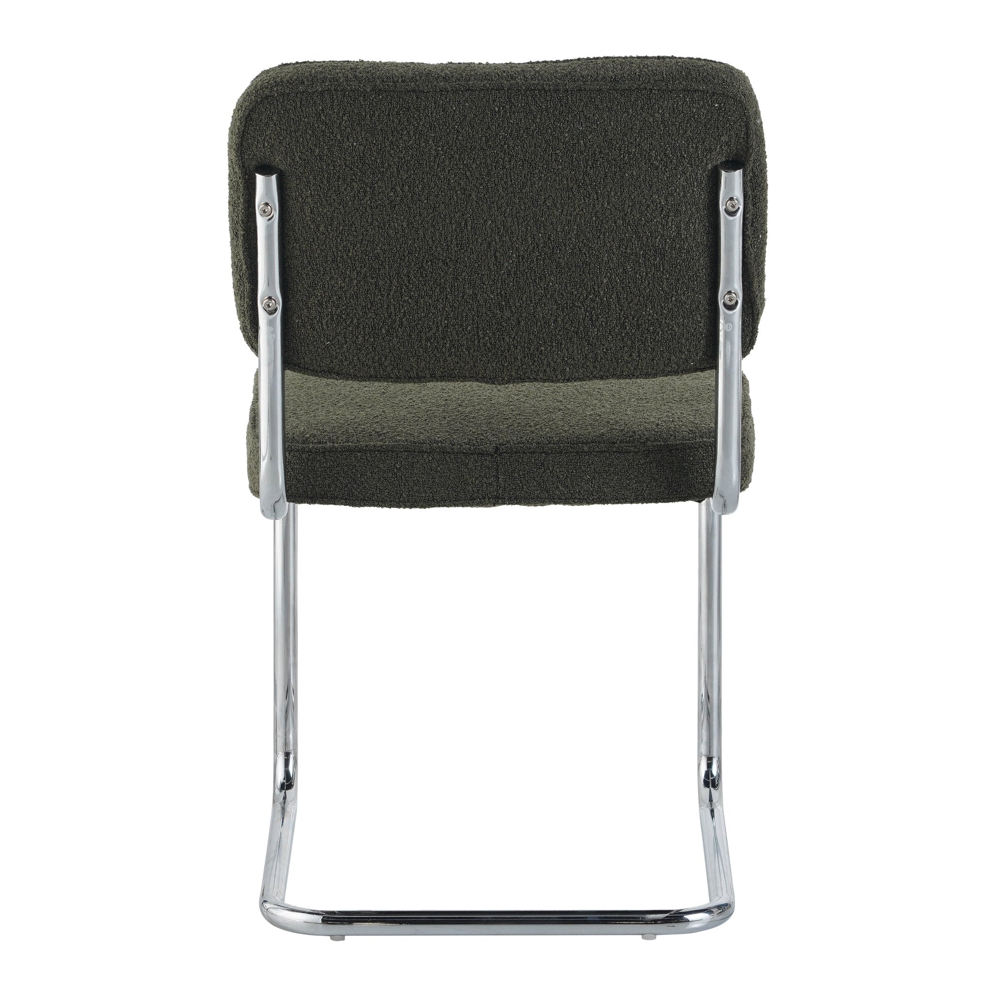 Modern Dining Chair Green Boucle Fabric Sway - Chrome Frame - Without Armrests