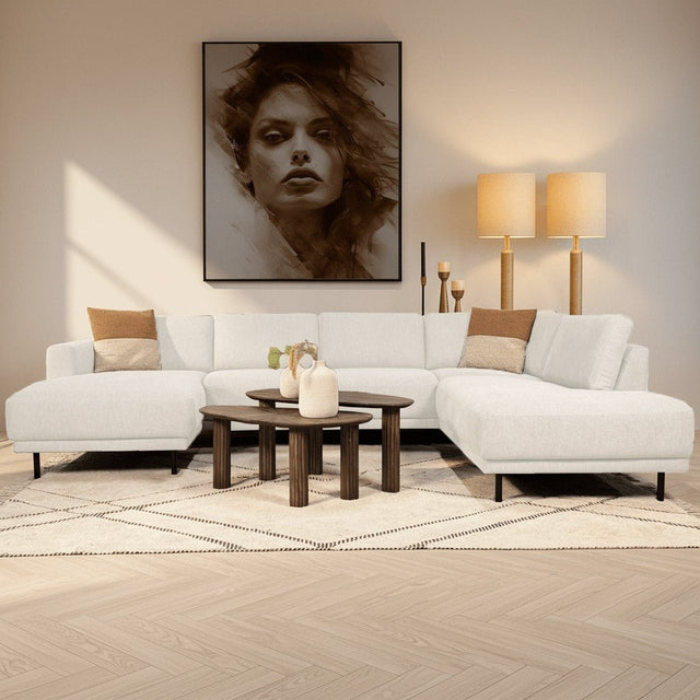 The Aniko U-shape corner sofa is the perfect choice for those who want to combine space with style. With generous dimensions and a comfortable lounge layout, this sofa is ideal for families or for those who enjoy hosting guests. The sleek lines and beige fabric make this a timeless eye-catcher in your interior.