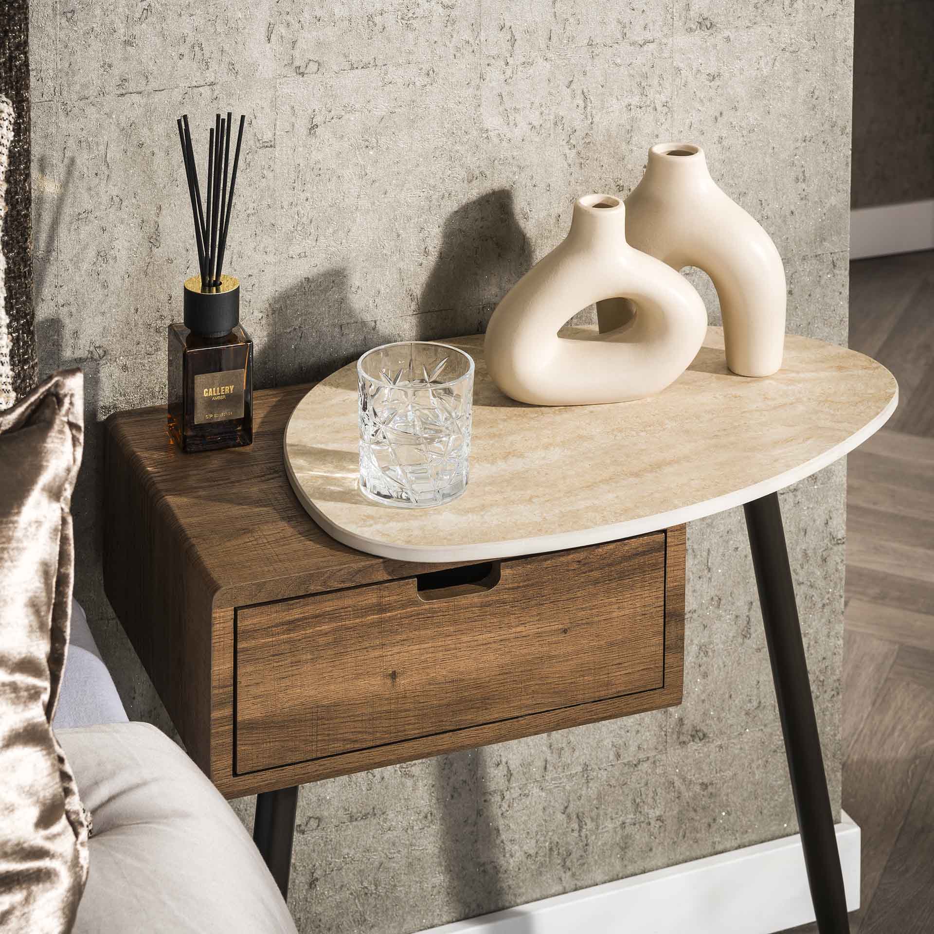 Functional Nightstand with Ceramic Travertine