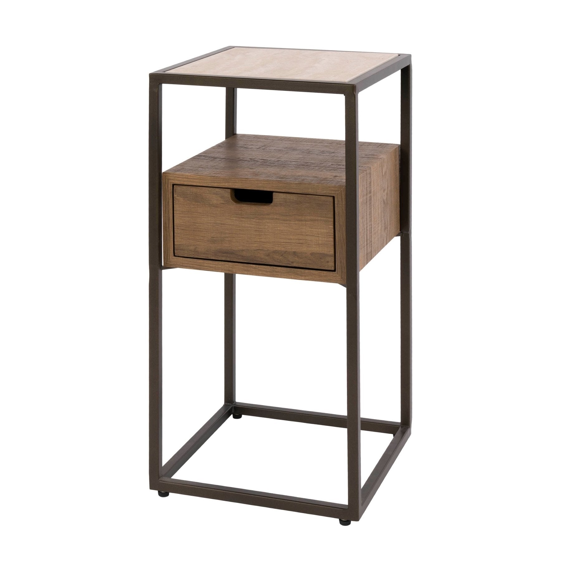 Nachtkastje met 1 lade keramiek travertin eikenhout Cady