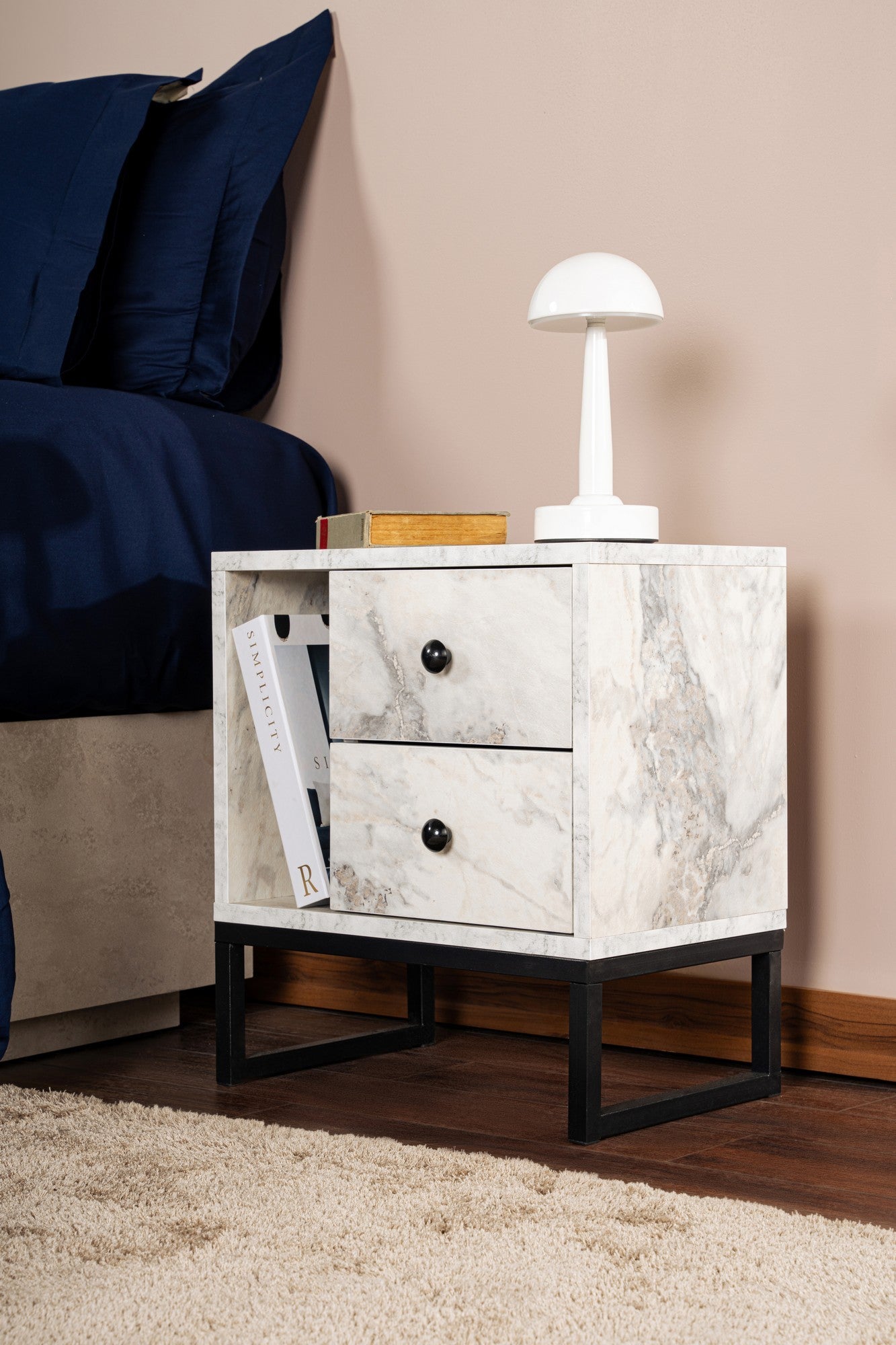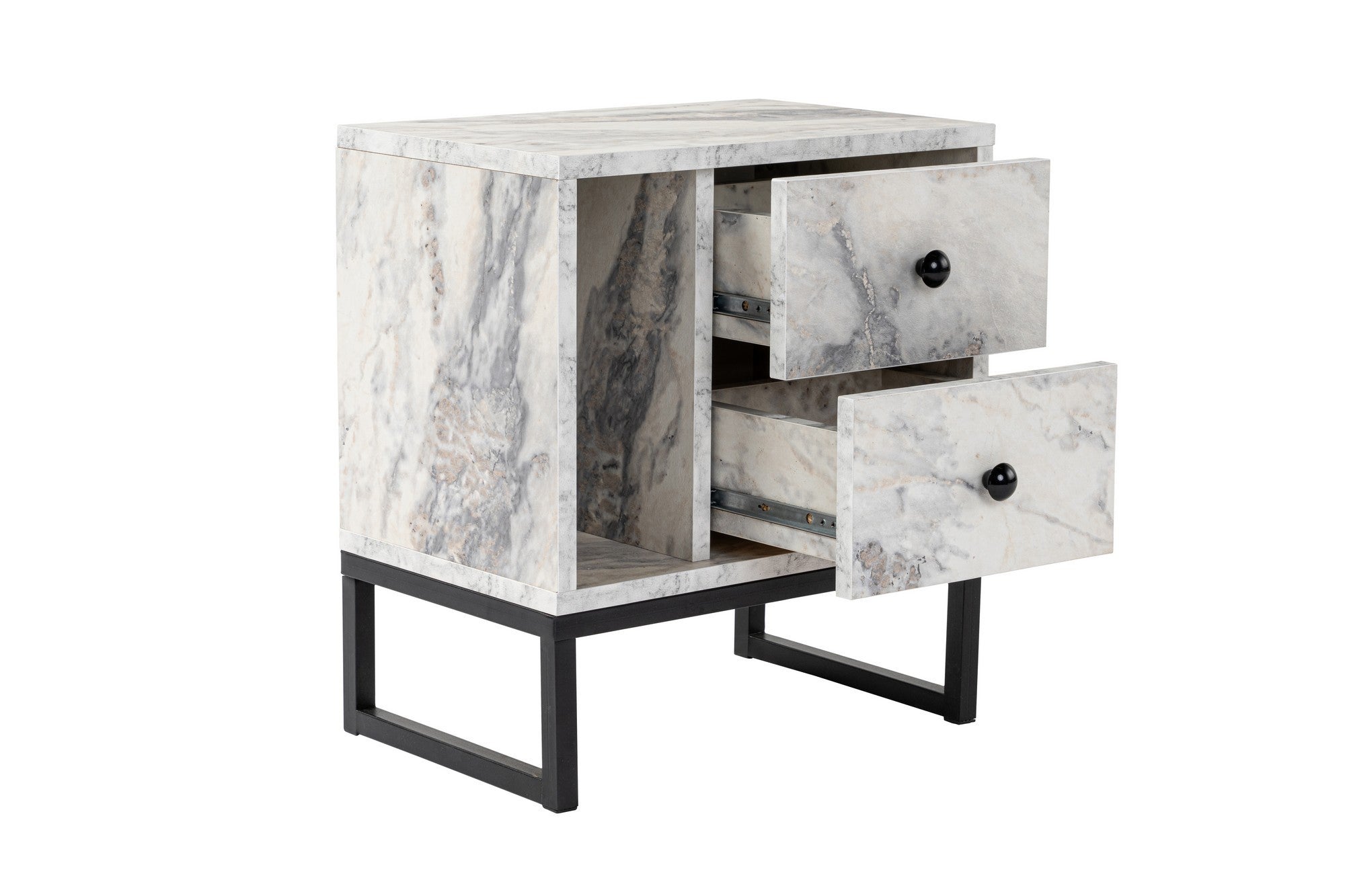 Nightstand White Marble Melamine Pulsar - Black Frame