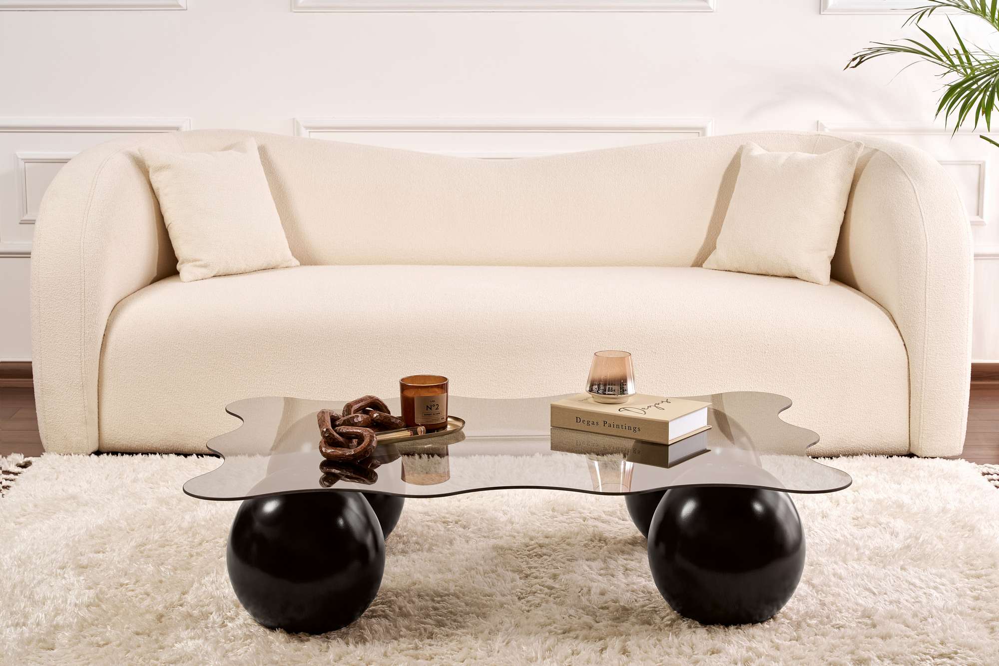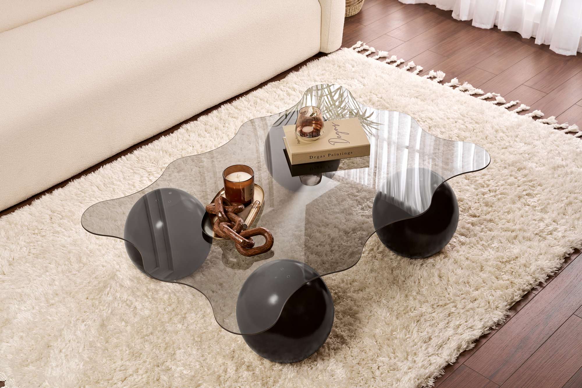 Coffee table Noxa black and gray 120x80 cm Black Grey Tempered glass. The tabletop is made of tempered glass and provides a clear, modern look that fits various interior styles. The slim profile and clean lines give the space an airy and inviting atmosphere. Thanks to the combination of glass and a sturdy base, this furniture not only feels premium but also maintains its light character in daily use.