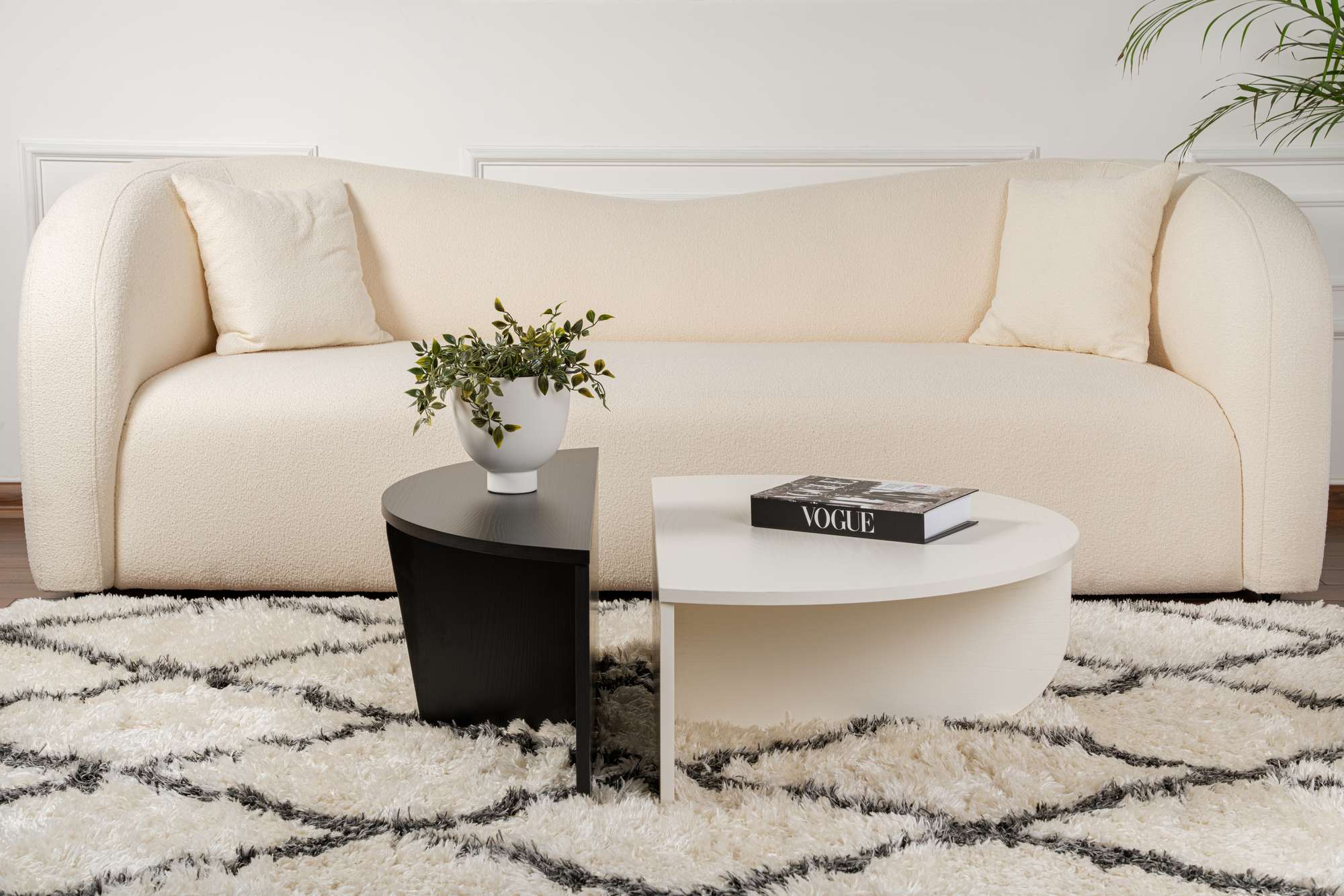 Orion Coffee Table Wood White Black 90x60 cm Wood White Wood Black Melamine Transform your living space with the Orion Coffee Table, a contemporary piece with a durable melamine finish and a timeless appearance. The combination of Wood White and Wood Black gives a fresh yet elegant look that is easy to integrate into various interior styles. Whether you're creating a cozy seating area or a sleek, modern space, this table concept combines ambiance and function.