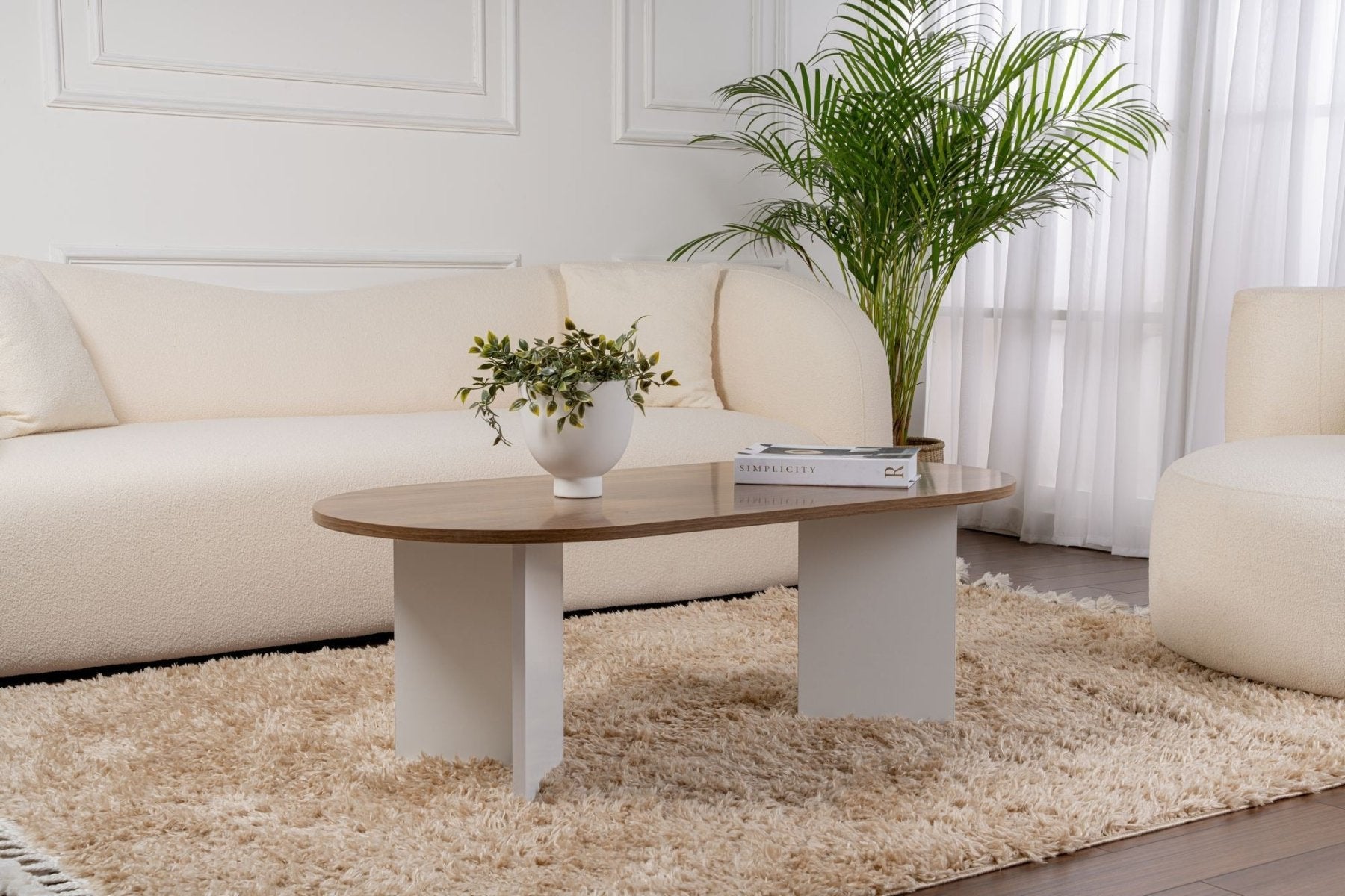 Oval Coffee Table Walnut Look - White Leg - Sabla - 119x60