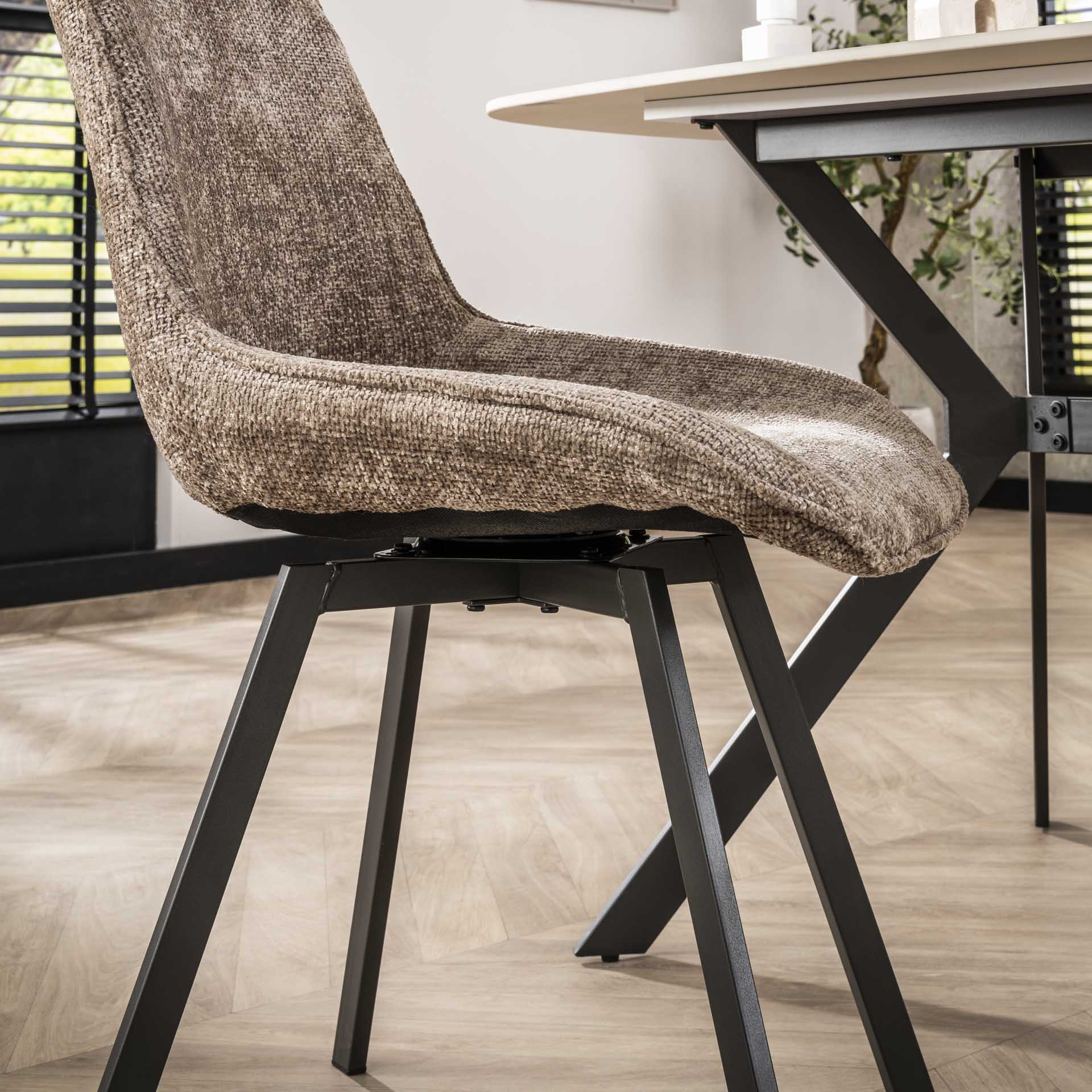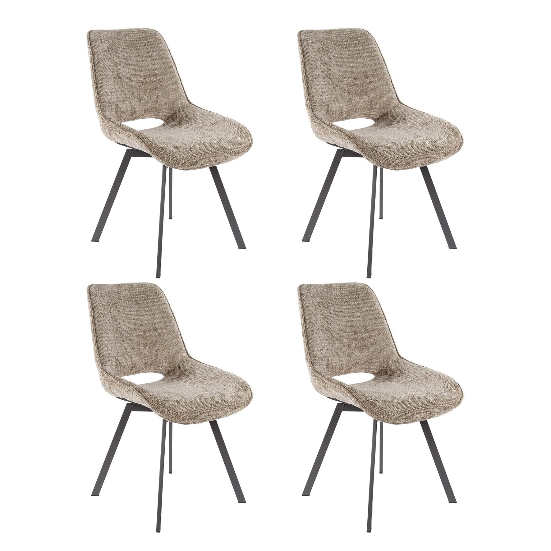 This set of 4 dining chairs combines timeless design with modern ease of use. The Riviera Rich champagne finish offers a soft appearance thanks to the rich color and evenly finished upholstery. Each chair is rotatable and designed for comfortable seating during long dinners or work moments at the table. The compact dimensions make the chairs suitable for both smaller dining rooms and larger dining spaces.
