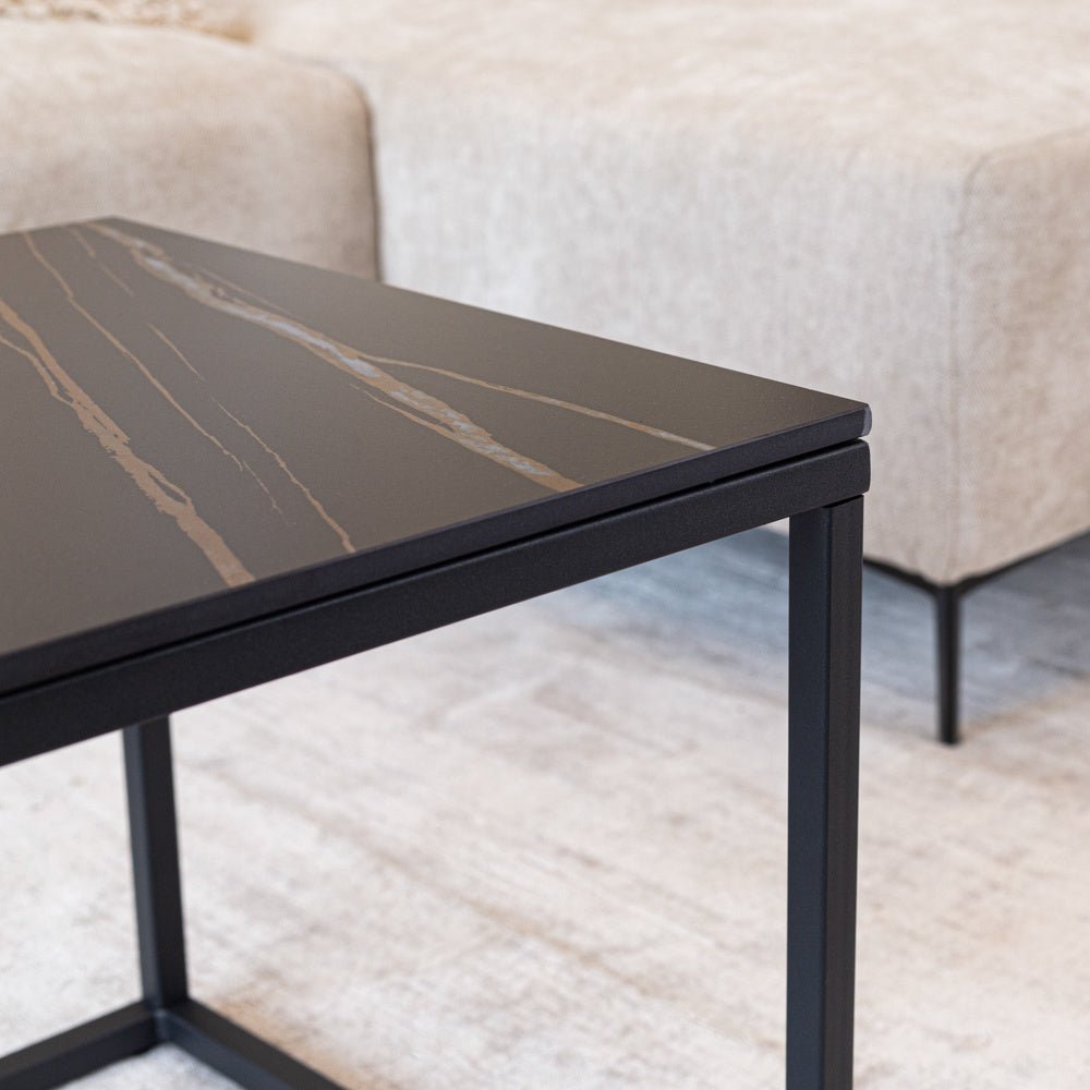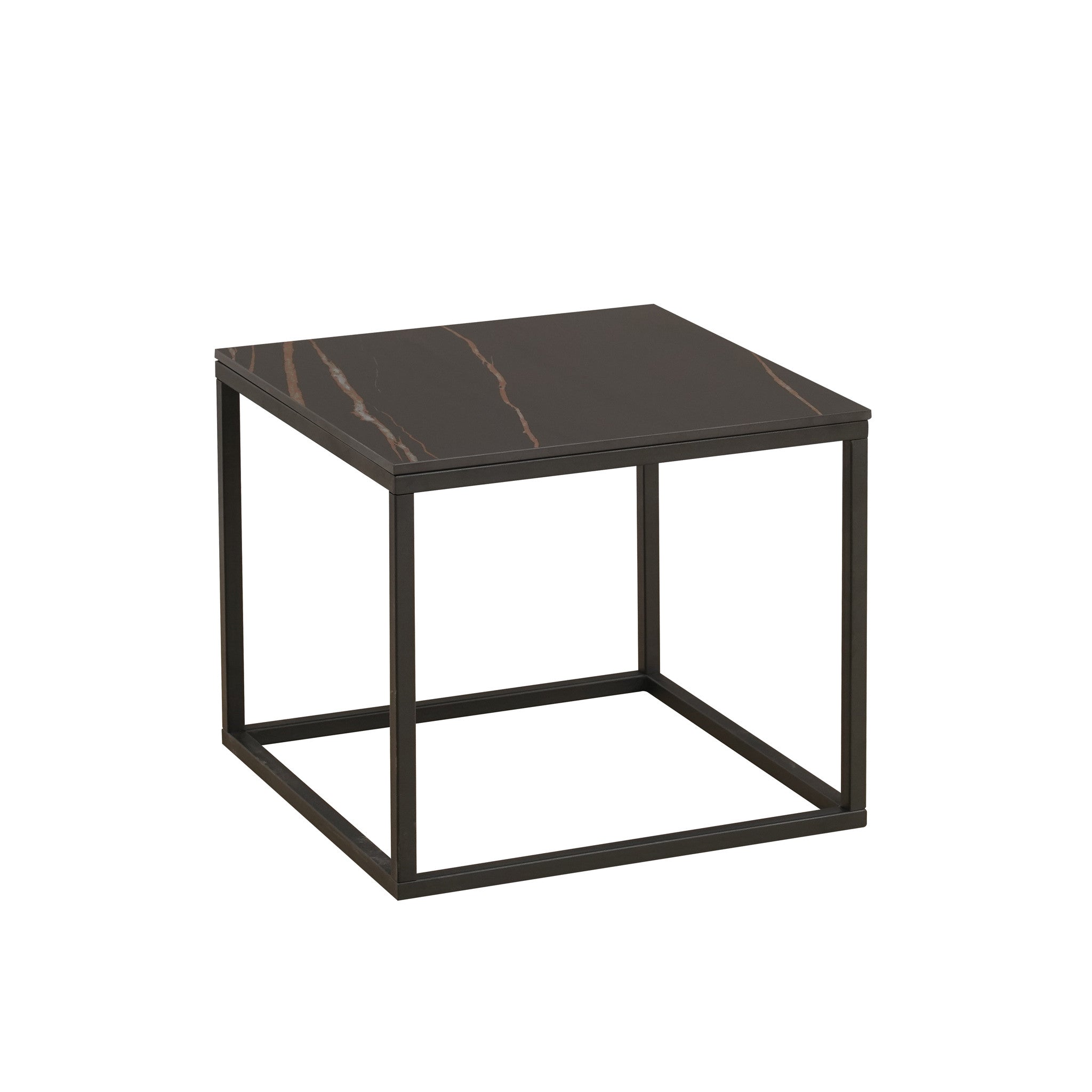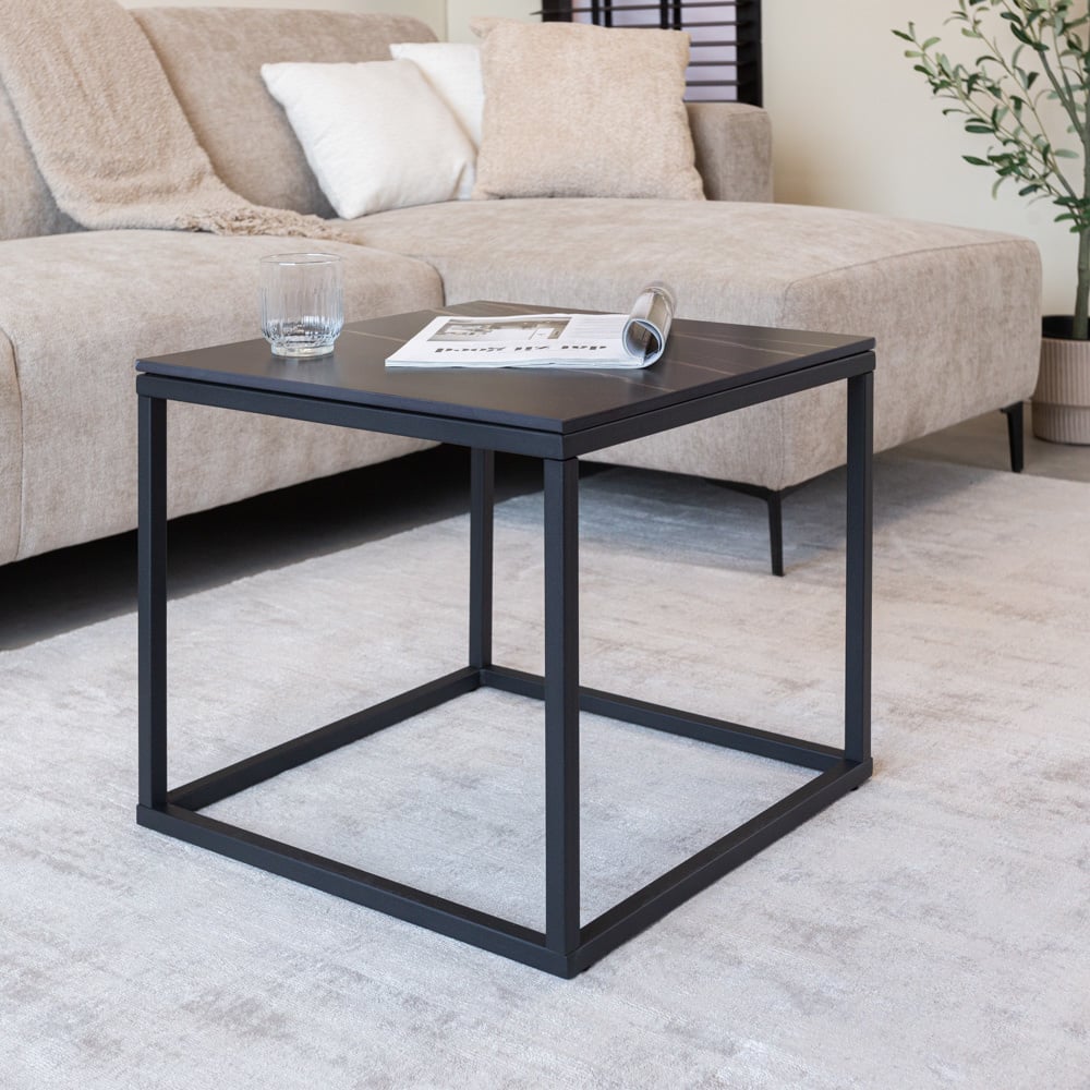 Side table fien square marble look black 50x50 cm