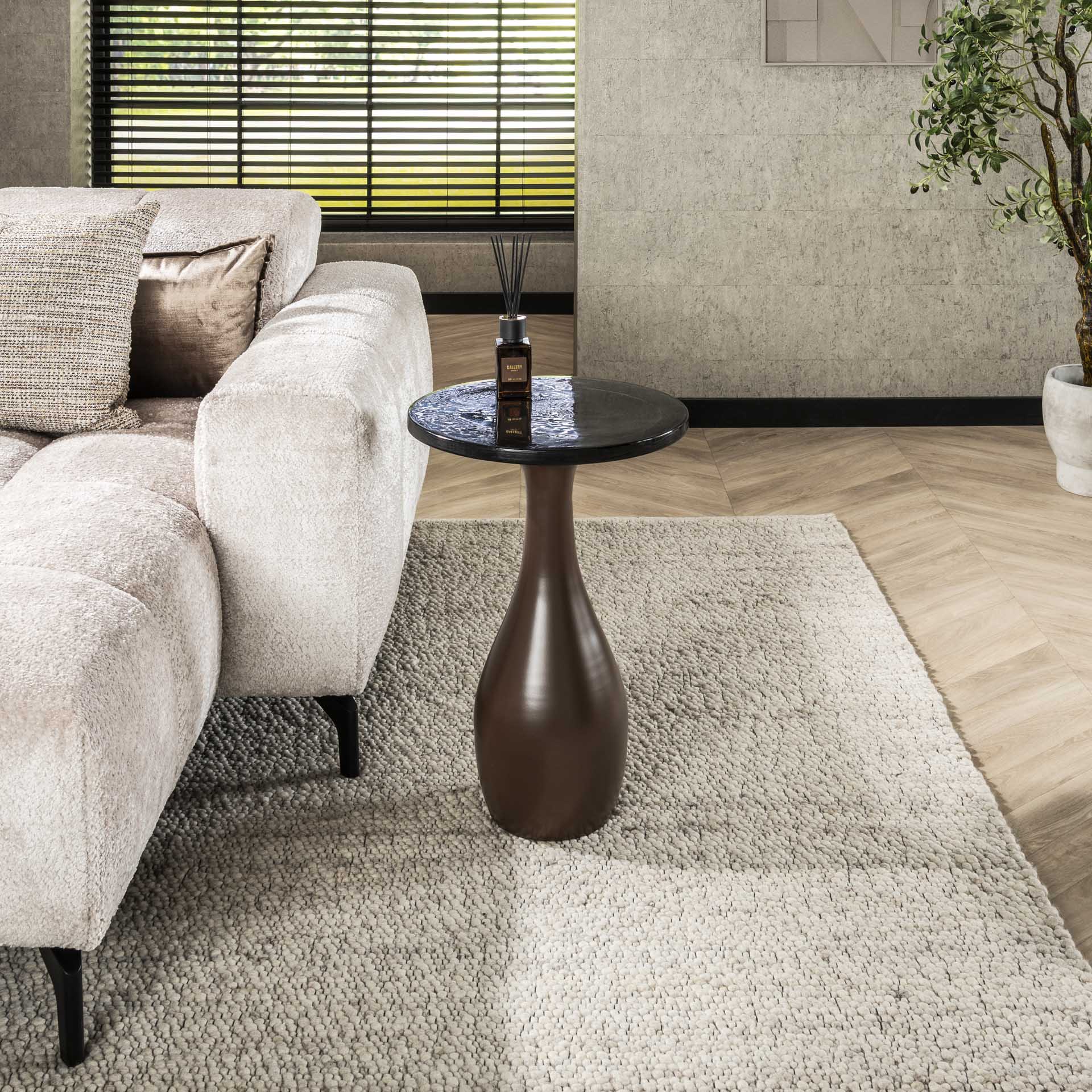 Turn your seating area into a stylish eye-catcher with this elegant side table in antique copper. The organic drop shape and warm copper color instantly add ambiance, while the compact size fits perfectly next to your sofa, armchair, or in a cozy corner. Thanks to the solid metal construction, the table feels robust and is ideal for your drink, book, or a beautiful vase. This side table effortlessly combines with industrial, modern, and hotel-chic interiors and adds character to any space.