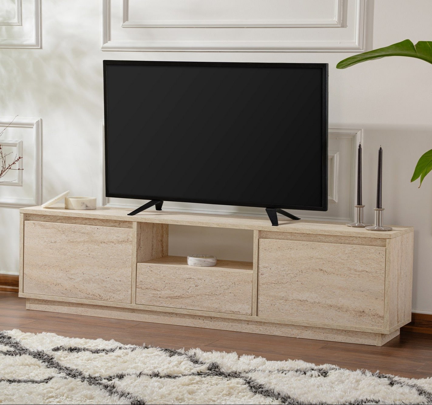 Transform your living room into a stylish and organized space with our beautiful travertine-colored TV stand. This TV furniture is not just a piece of furniture; it is a statement of elegance and refinement.