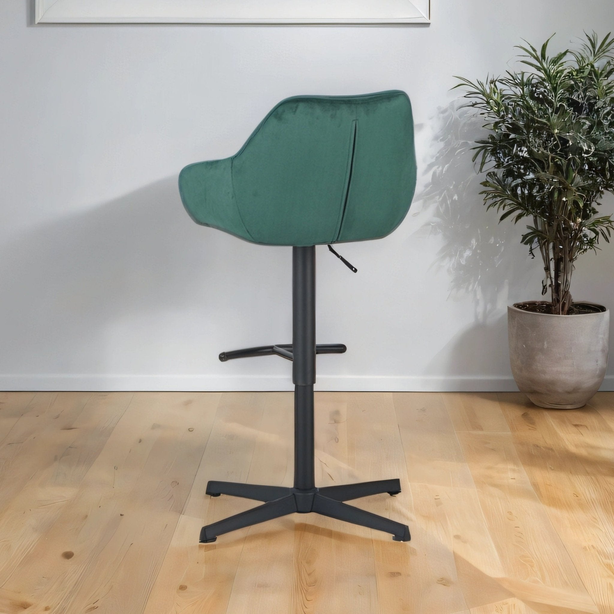 Venom Bar Stool Green Velvet - adjustable rotating bar seat with armrest