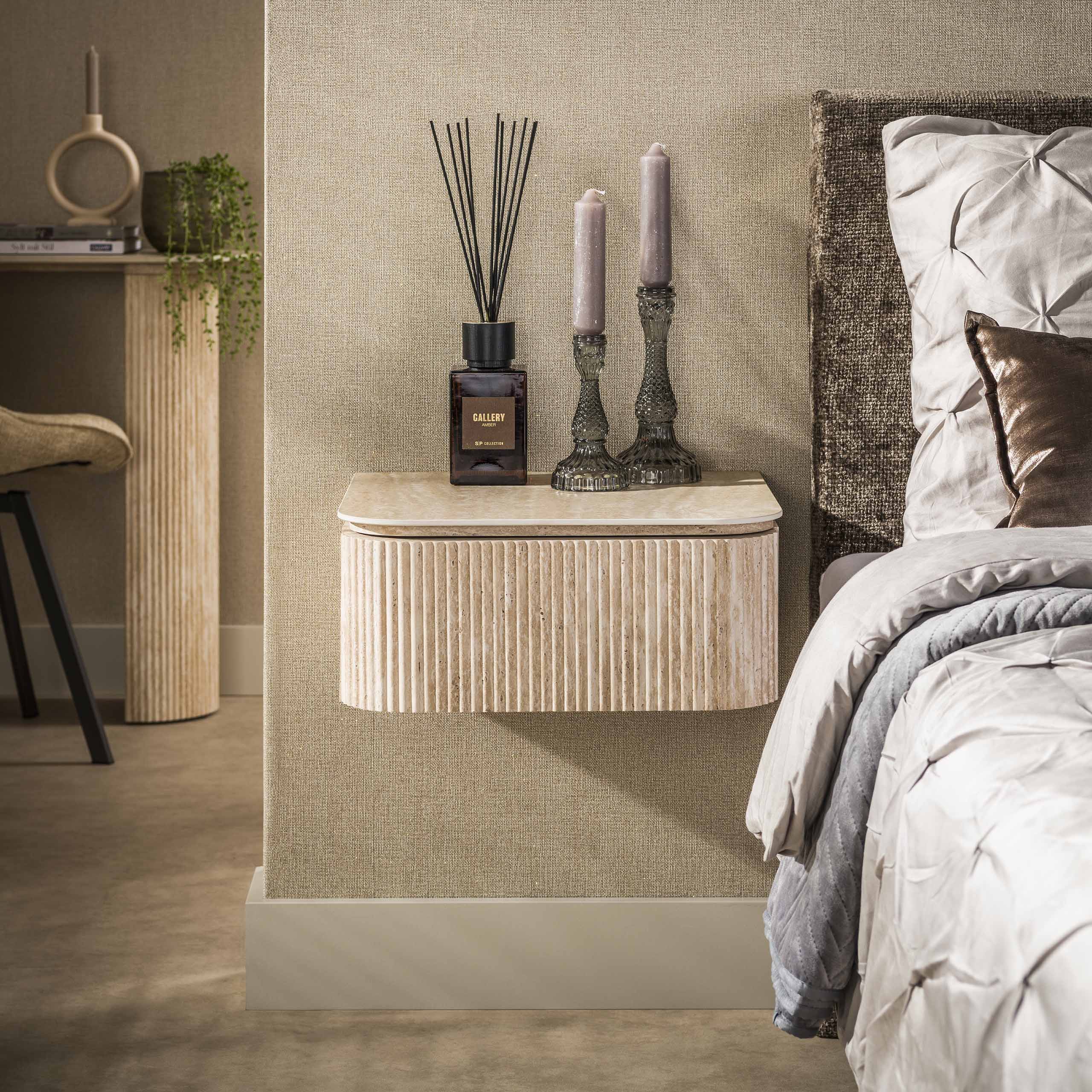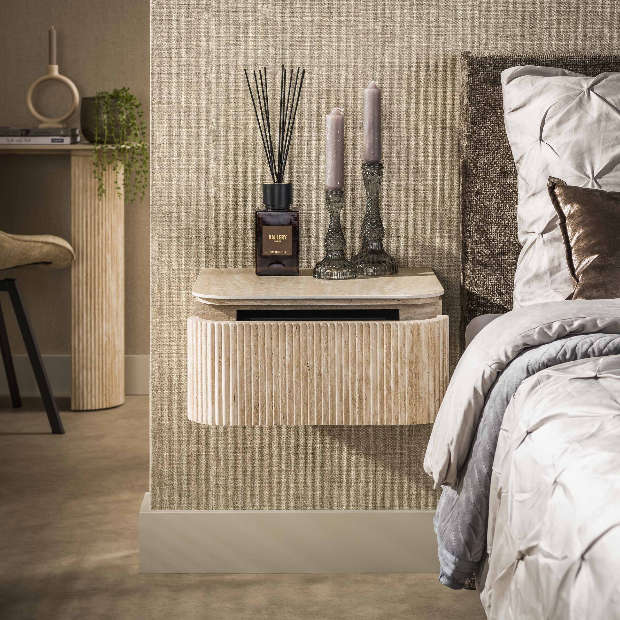 Zwevend nachtkastje met 1 lade Jimi beige keramiek travertin